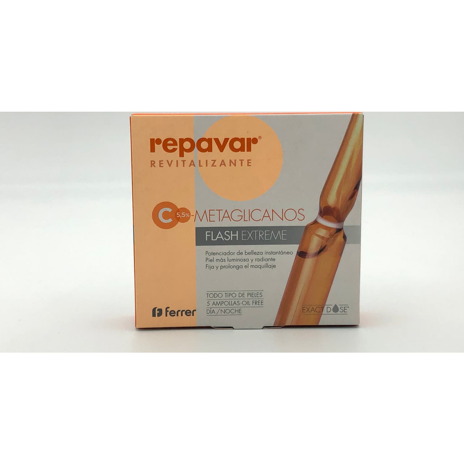 Repavar Revitalizante Metaglicanos Flash Extreme 5amp es una ampolla antiedad que ayuda a potenciar la belleza de la piel de forma instantánea.