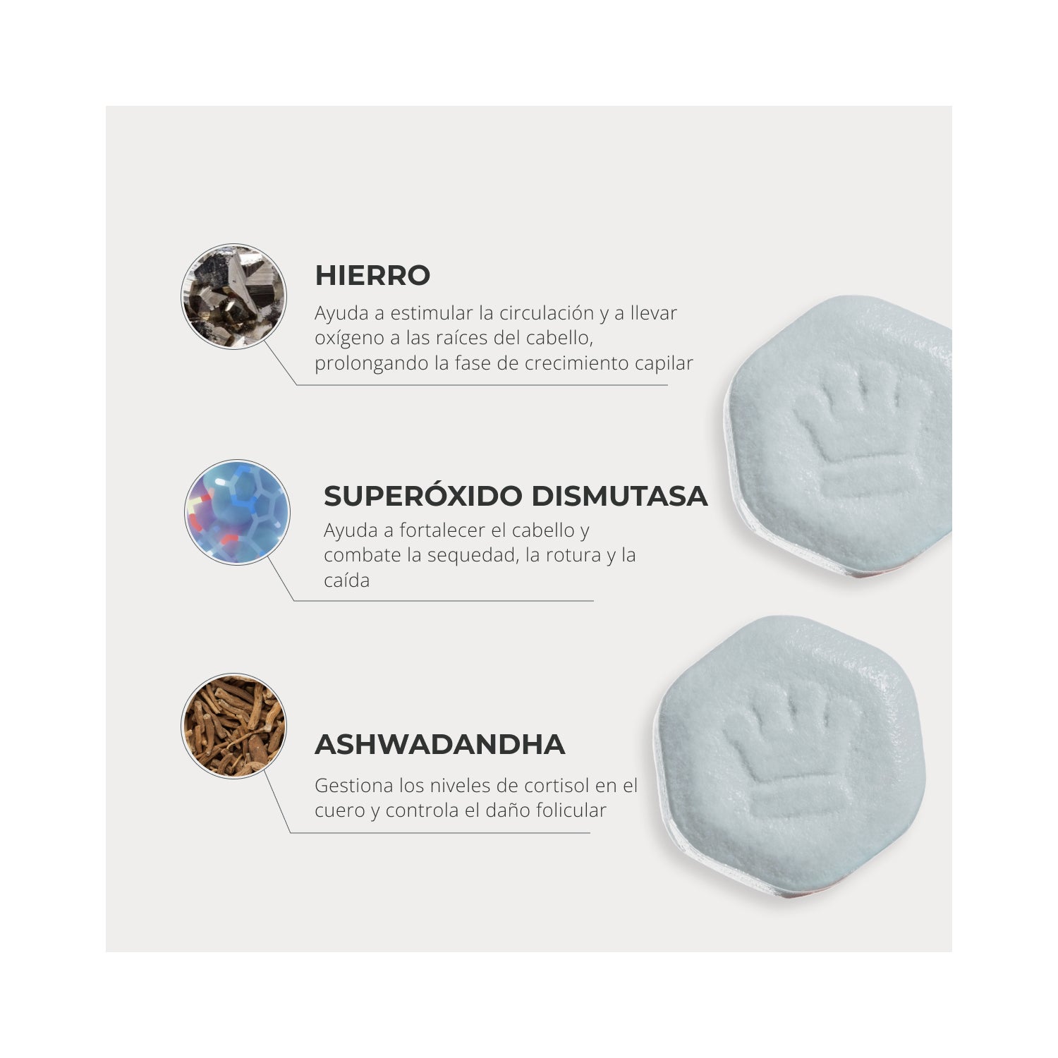 Su fórmula patentada enriquecida con superóxido dismutasa y ashwagandha, dos potentes antioxidantes que ayudan a reducir los radicales libres causados por el estrés y los factores medioambientales.