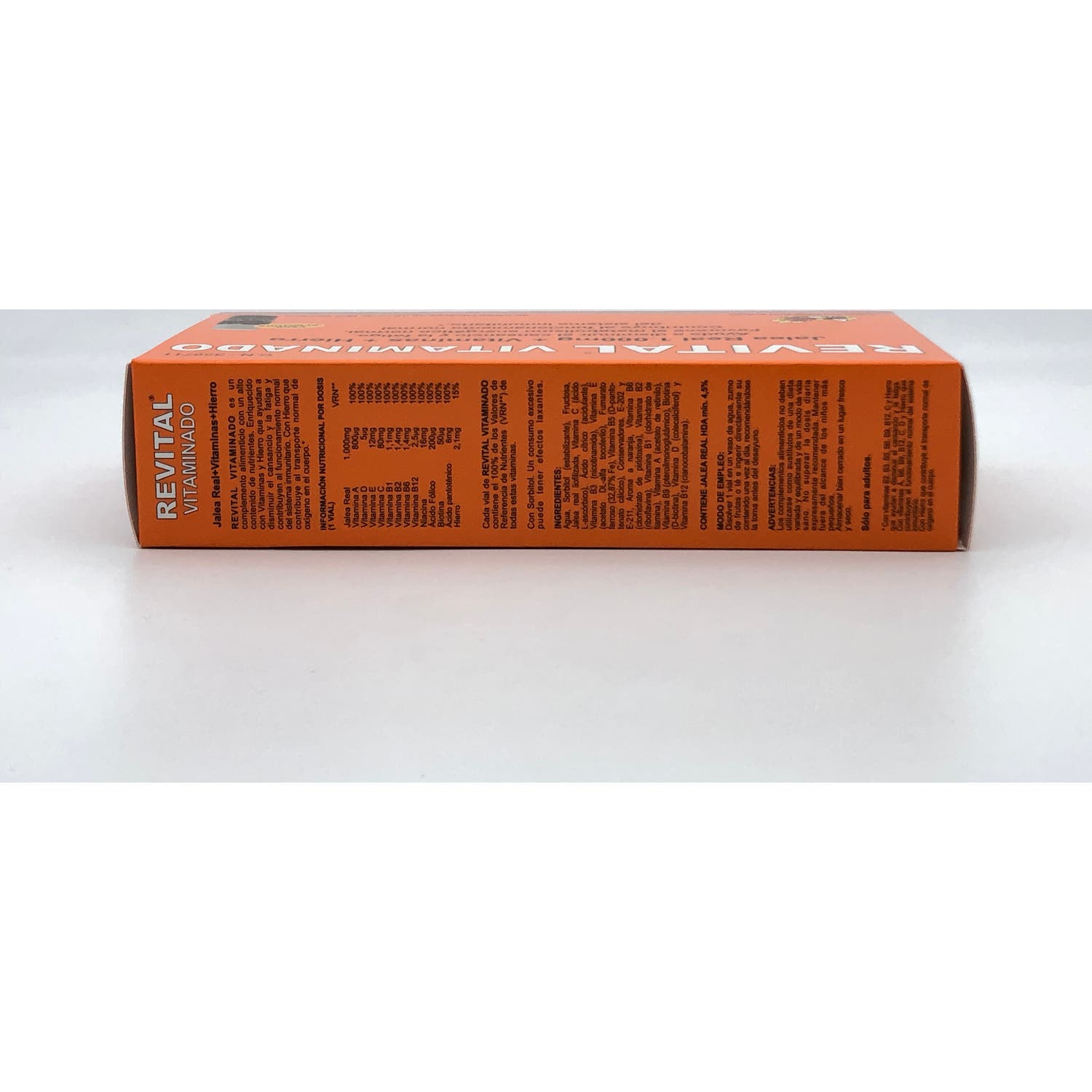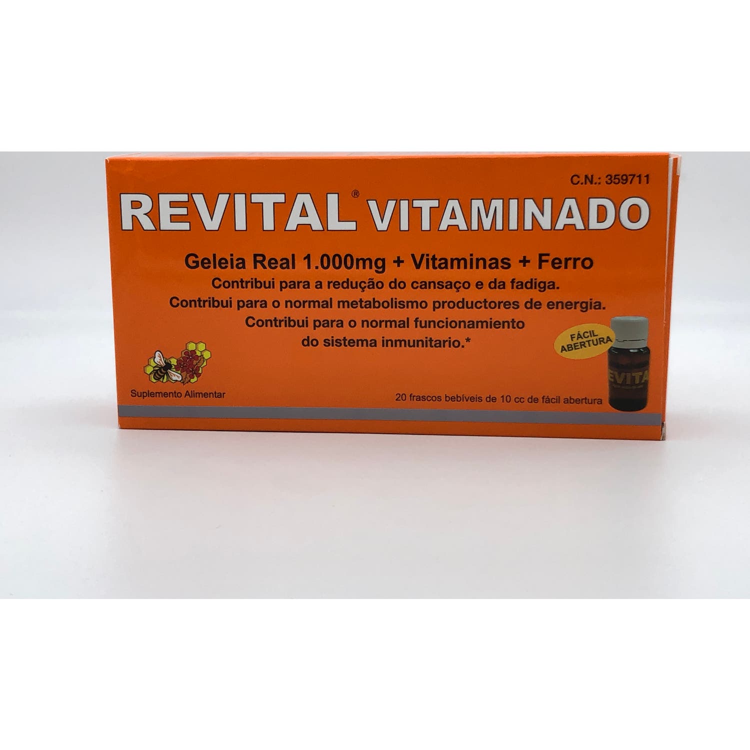 Revital Vitaminado Jalea Real 1000mg ampollas bebibles es un complemento alimenticio en formato ampollas bebibles para reducir el cansancio y la fatiga. Elaborado a base de Jalea Real, Vitaminas (vitamina A, C, D, E, B1, B2, B6, B12, niacina, ácido fólico y Biotina) y hierro. La jalea real es una sustancia natural que aporta un soporte energético y reconstituyente al cuerpo, mejorando y optimizando las funciones del organismo.