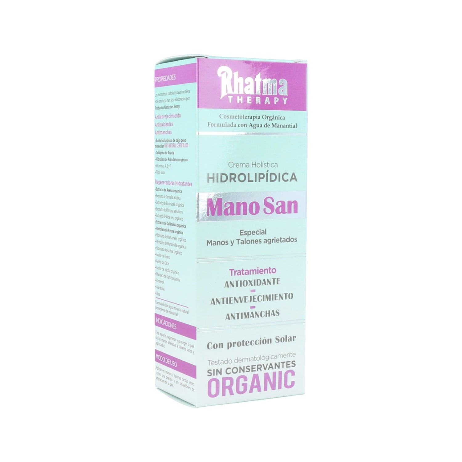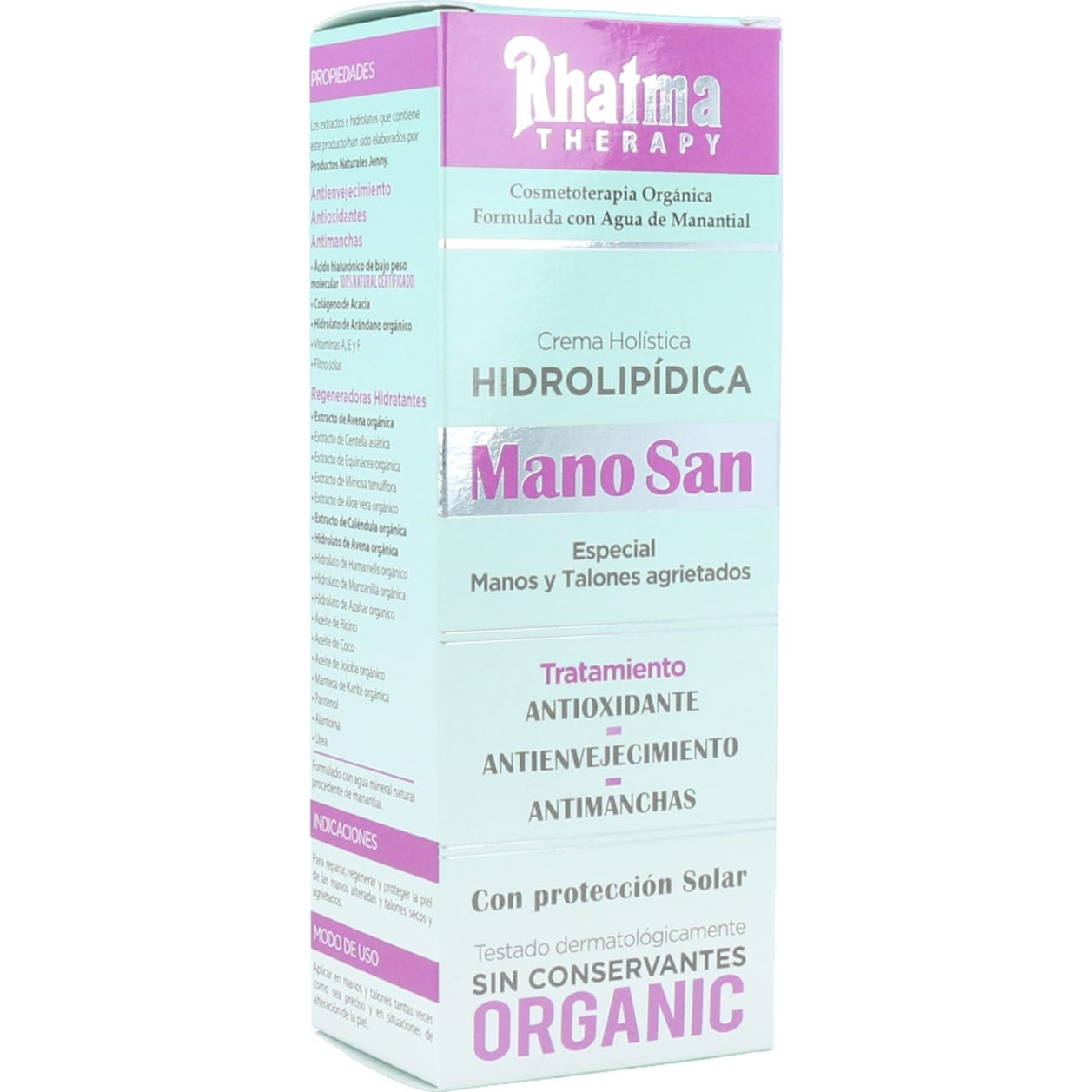 Rhatma Mano San crema para manos secas y sensibles es una suave loción perfecta para reparar las manos dañadas y extremadamente sensibles. Es un tratamiento óptimo para regenerar la cutícula, al mismo tiempo que endureza las uñas.