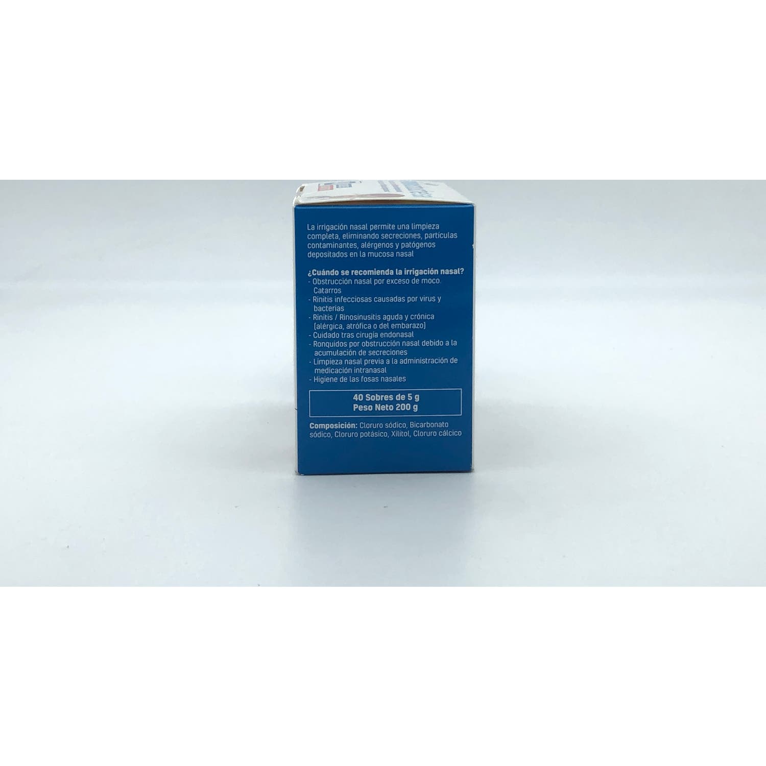 Elaborada a base de una combinación de sales que contribuyen a realizar lavados nasales en goteo retronasal. Además, contiene cloruro sódico, bicarbonato sódico, xilitol, cloruros potásico y cálcico.