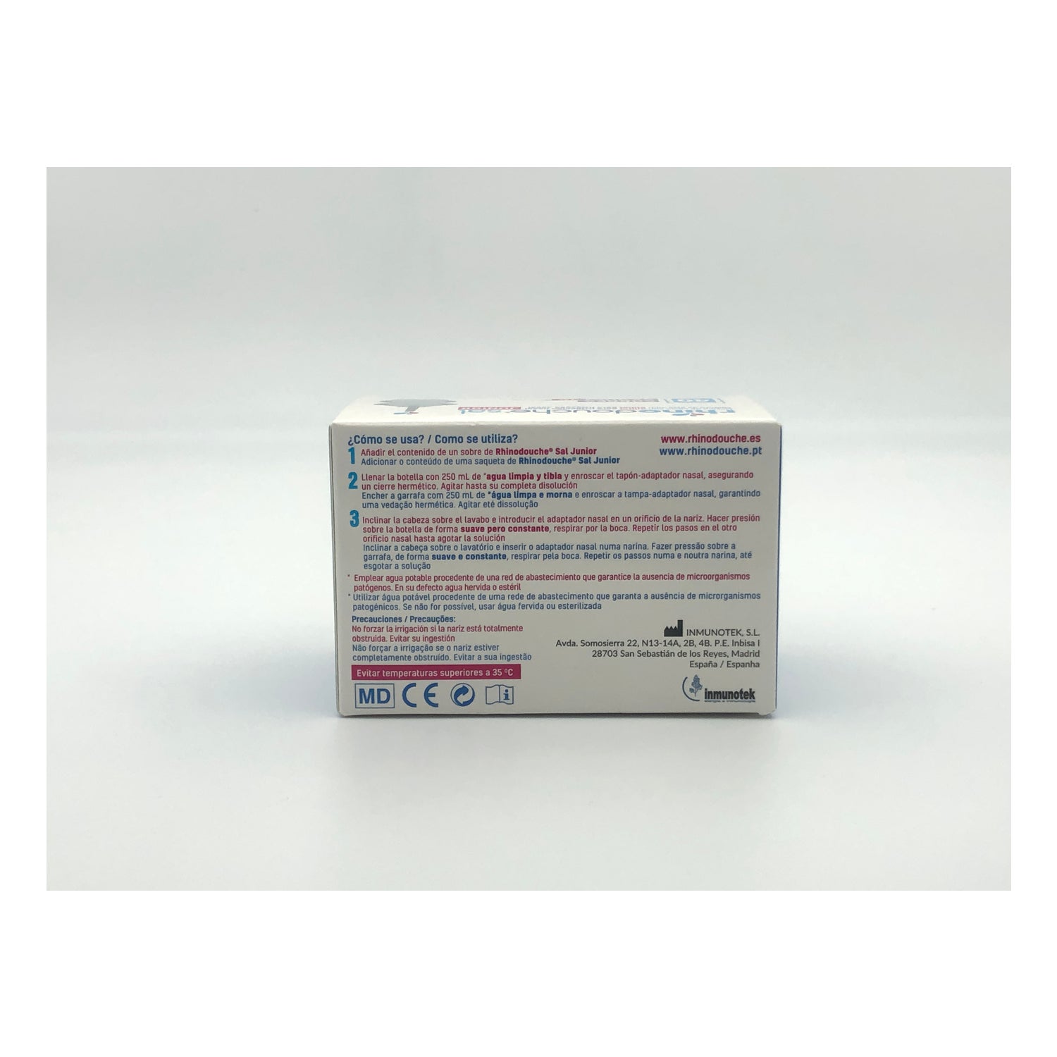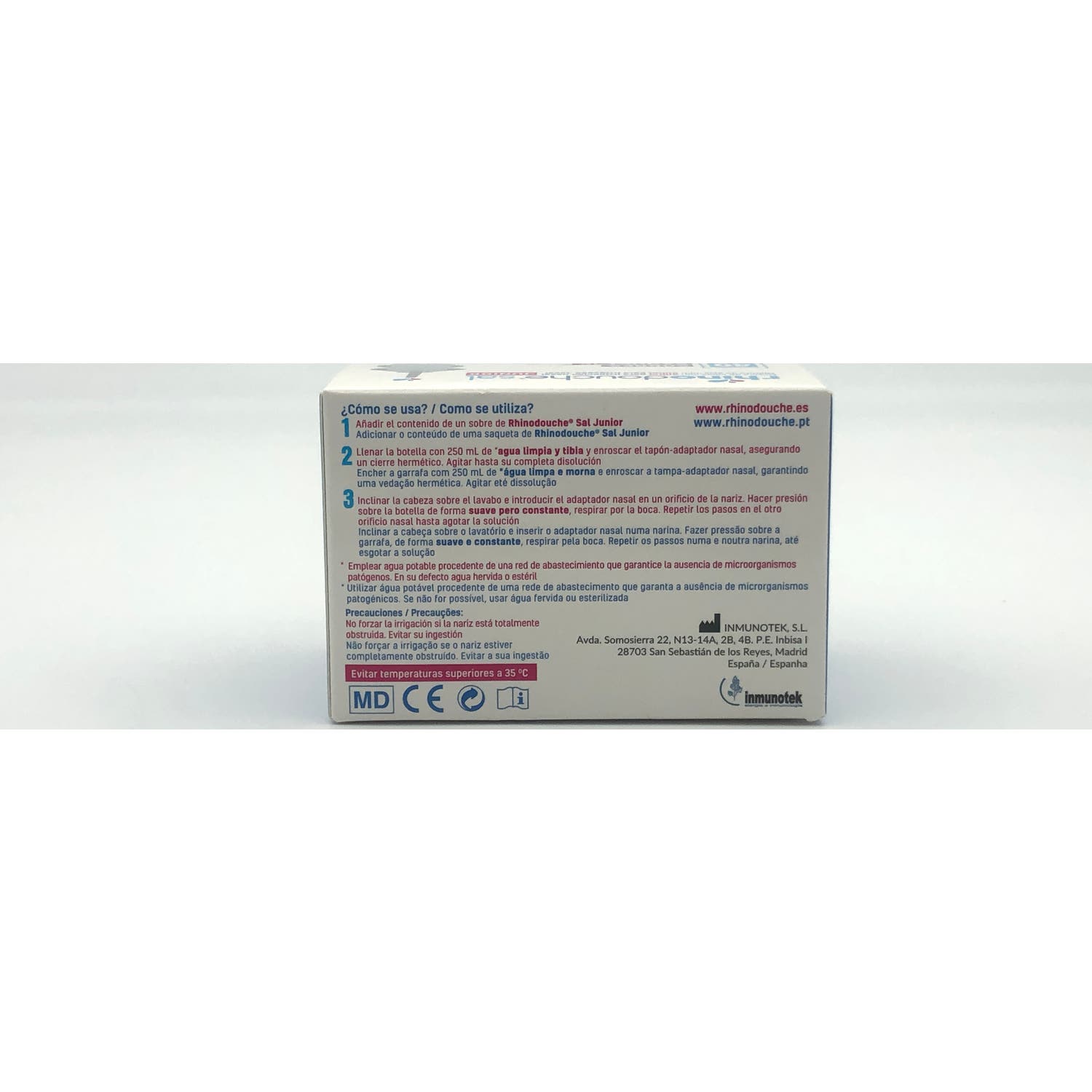 Rhinodouche Sal Junior 40 sobres es una solución para ayuda a disolver y eliminar la mucosidad, mientras actúa como un humectante de la mucosa nasal.