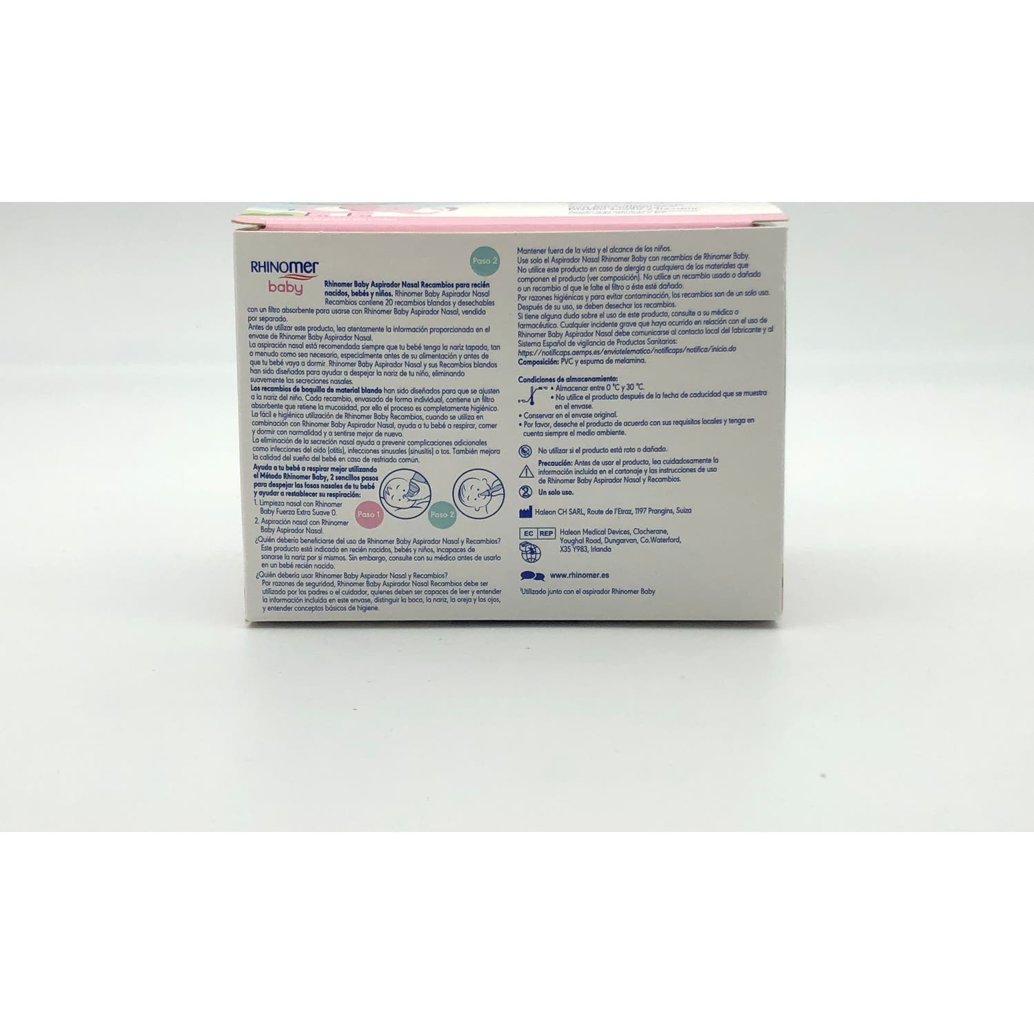 Estos recambios desechables están fabricados con un filtro absorbente que asegura la total seguridad e higiene en el proceso de limpieza y aspiración de la mucosidad.