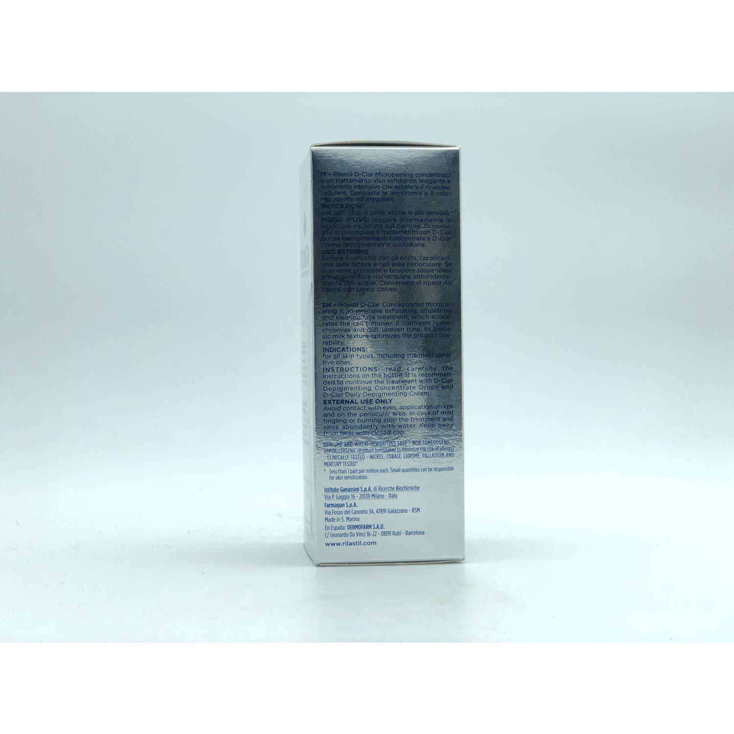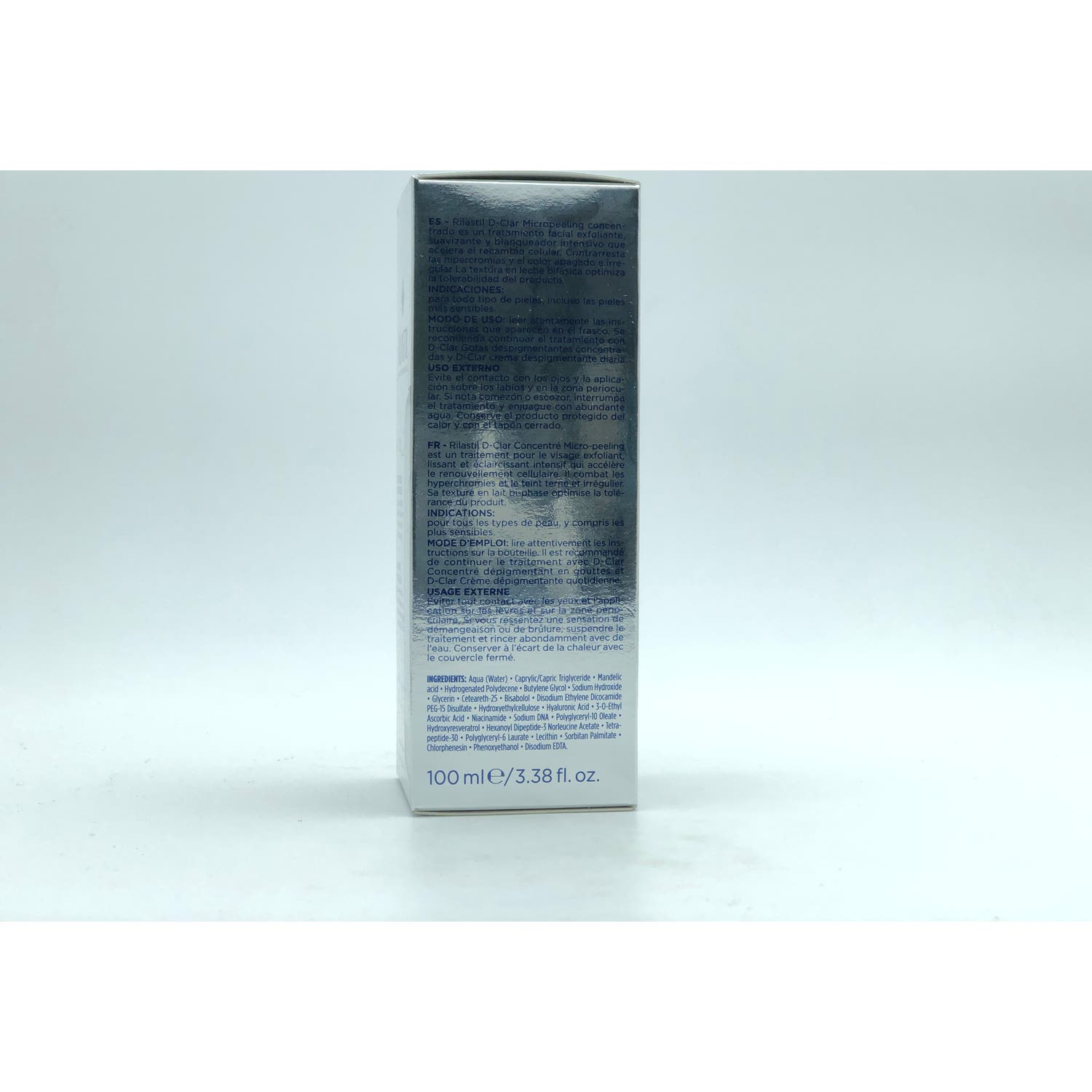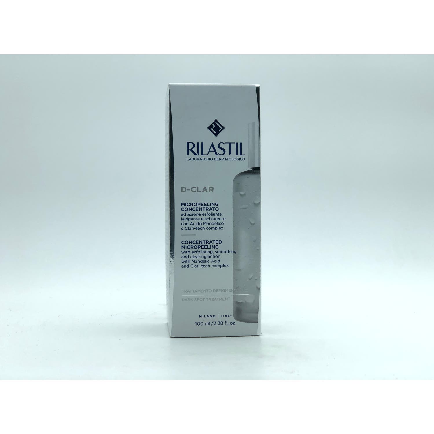 Rilastil D-Clar Micropeeling Concentrado Despigmentante 100ml es una loción bifásica que contribuye a despigmentar las manchas. Formulado a base de ácido mandélico que activa la renovación celular realizando un efecto exfoliante y clari-tech complex, que ayuda a despigmentar la piel y minimiza la aparición de nuevas.