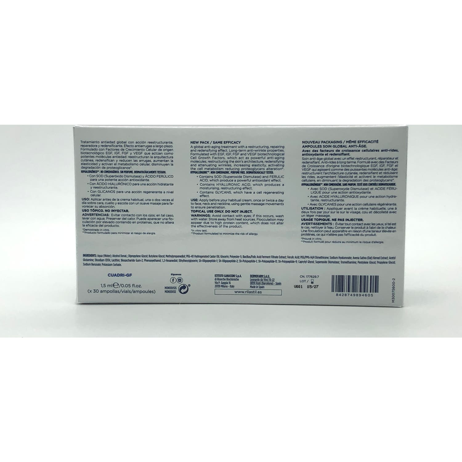 Rilastil Multirepair Cuadri GF Tratamiento Antiedad Global 30 ampollas es un tratamiento antiedad en ampollas, formulado con 4 factores de crecimiento celular con poder antioxidante y redensificante.