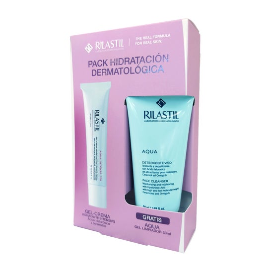 Pack especial para pieles deshidratadas: Rilastil Aqua Limpiador Facial de 100ml + Rilastil Aqua Intense, incluye un limpiador facial y una crema hidratante, que ayudan a realizar la limpieza de la piel del rostro, para después aplicar la hidratación y que la crema hidratante penetre mucho mejor y la piel la absorba más rápidamente.