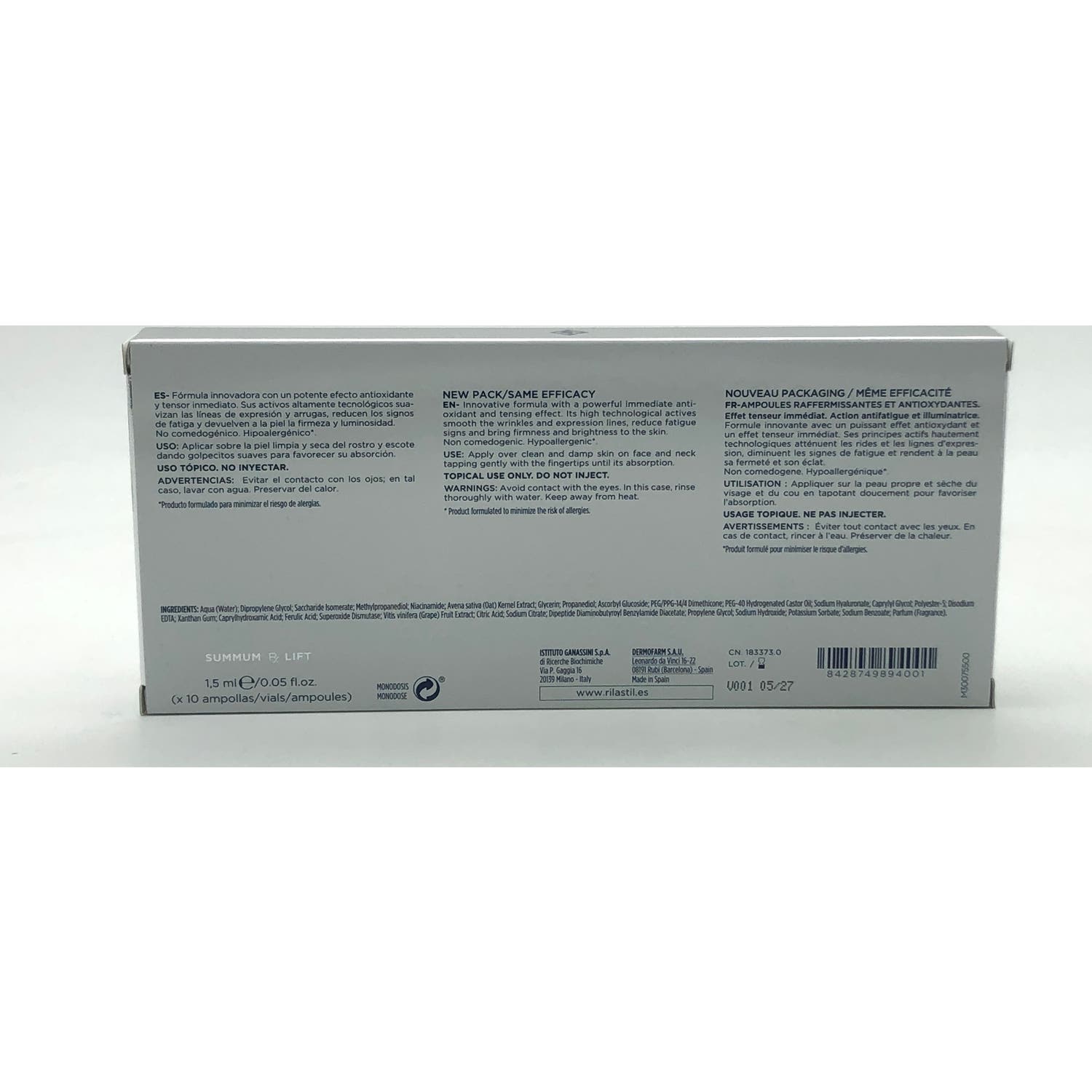 Rilastil Summum RX Lift Reafirmante y Antioxidante 10 ampollas es un tratamiento antioxidante con efecto tensor. Formulado con activos tecnológicos que suavizan las arrugas y líneas de expresión, reducen los signos de fatiga y devuelven la firmeza y la luminosidad a la piel.