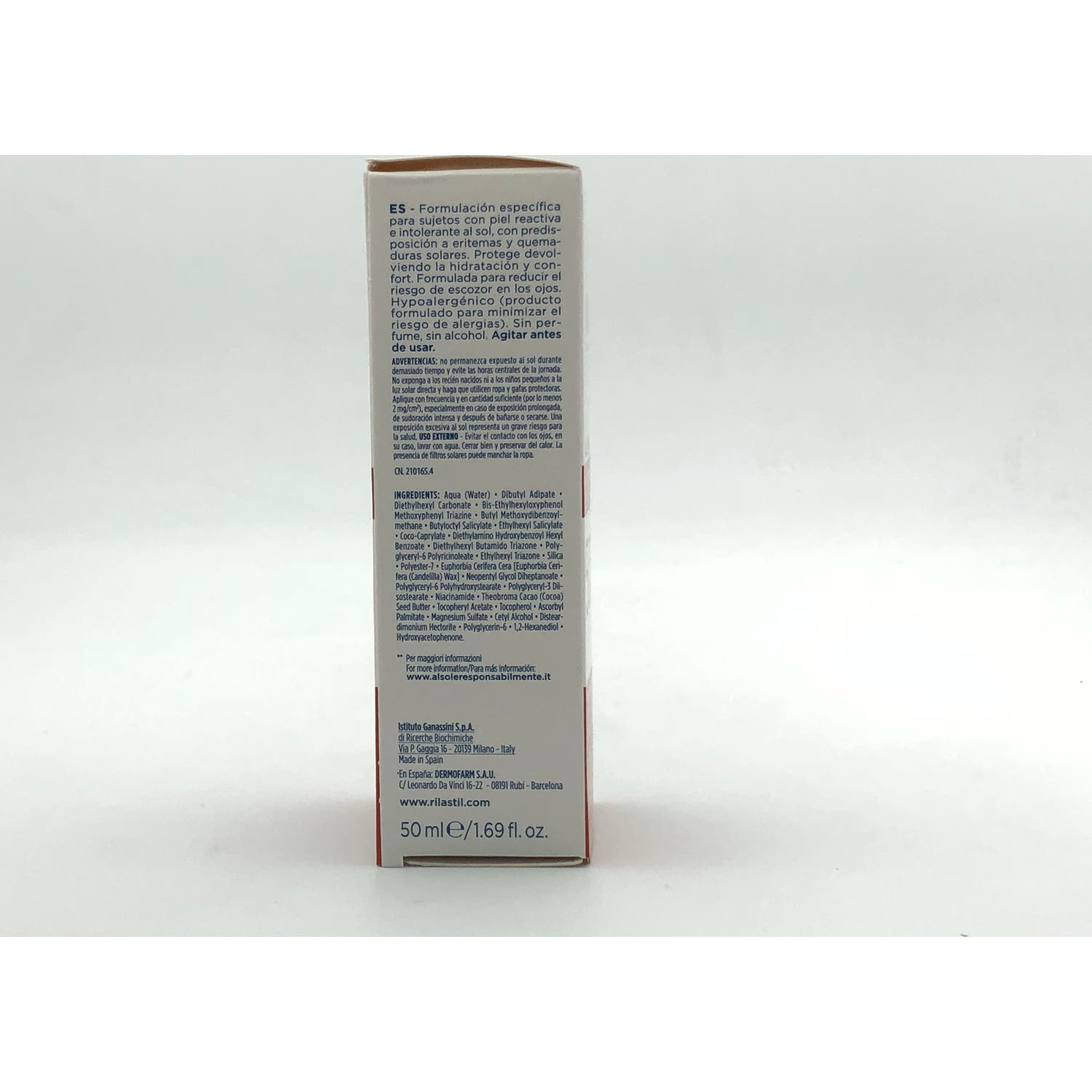 Rilastil Sun System Allergy Fluido Solar Facial Piel Alérgica SPF50+ 50ml es una emulsión hipoalergénica que ayuda a proteger las pieles sensibles de la acción nociva de la radiación UVA, UVB, IR y HEV.