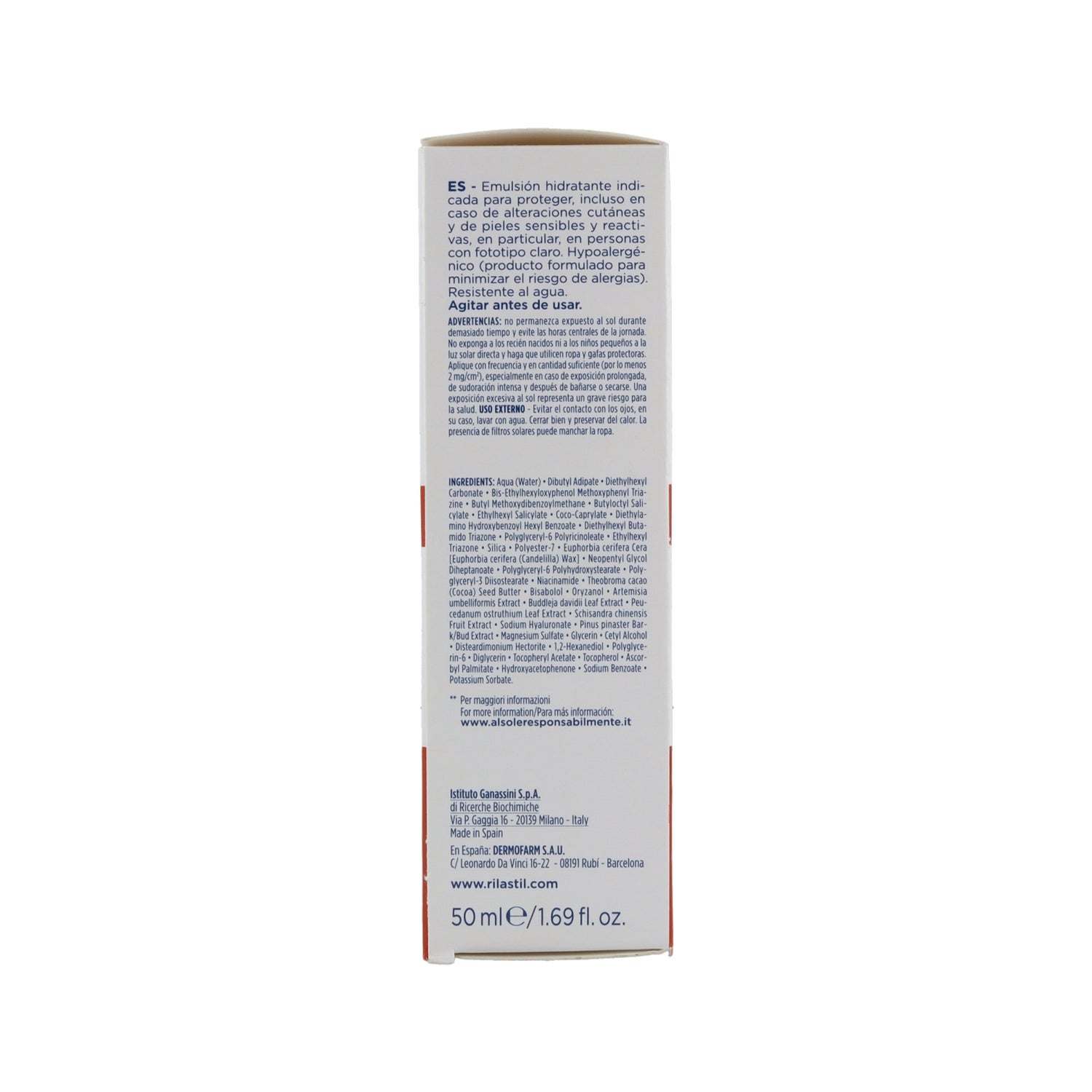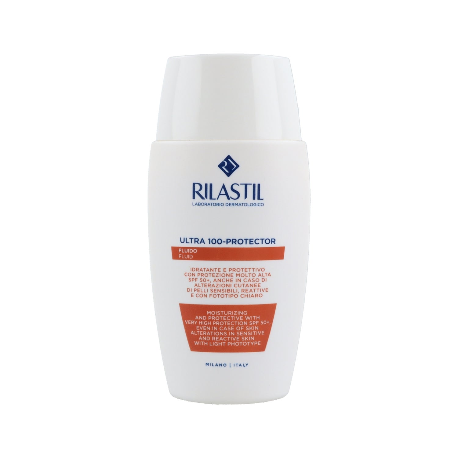 Rilastil Sun System Ultra 100-Protector Fluido Solar Facial SPF50+ 50ml es una emulsión hidratante que ofrece una protección solar muy alta SPF UVB 131-UVA 53.