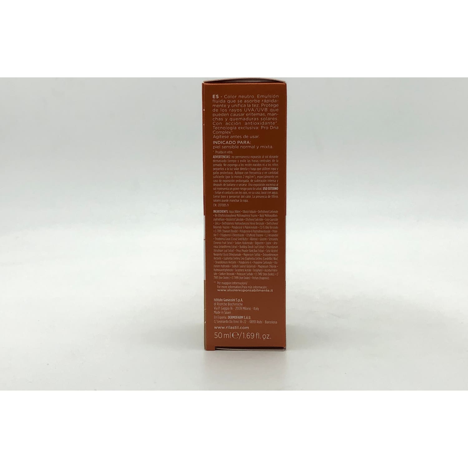Rilastil Sun System Water Touch Fluido Solar Facial Color SPF50+ 50ml es una crema con protección solar de alta graduación para el rostro.