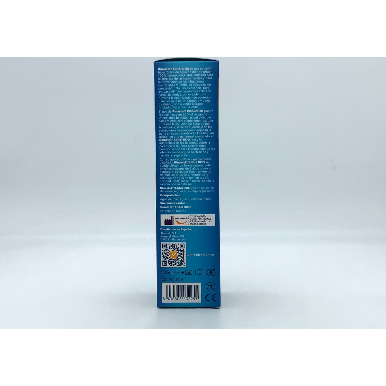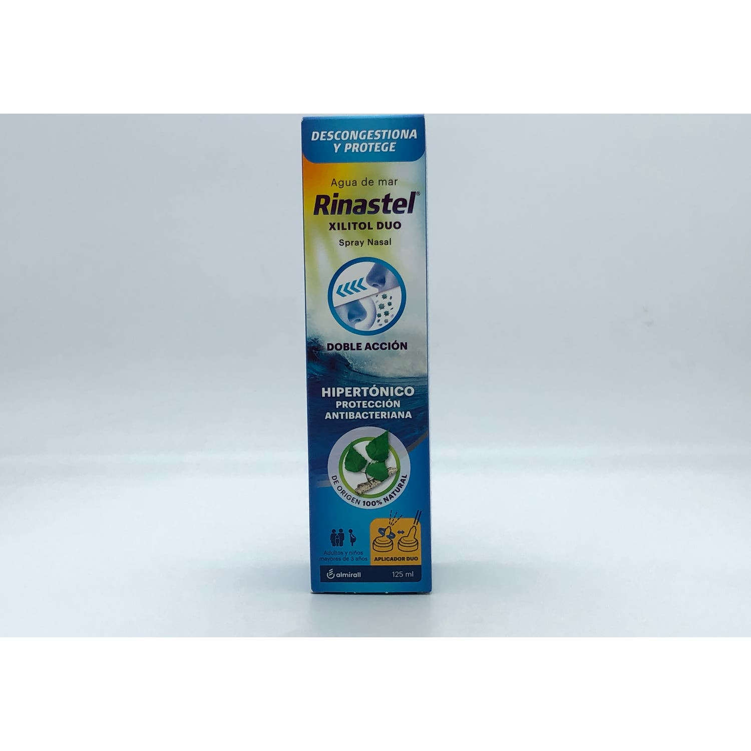 Rinastel Xilitol Duo Spray Nasal 125ml es un spray nasal de origen natural enriquecido con xilitol que ayuda a prevenir las infecciones bacterianas. Asimismo, ayuda a limpiar y humidificar las fosas nasales. Apto para niños a partir de los 3 años y para adultos.