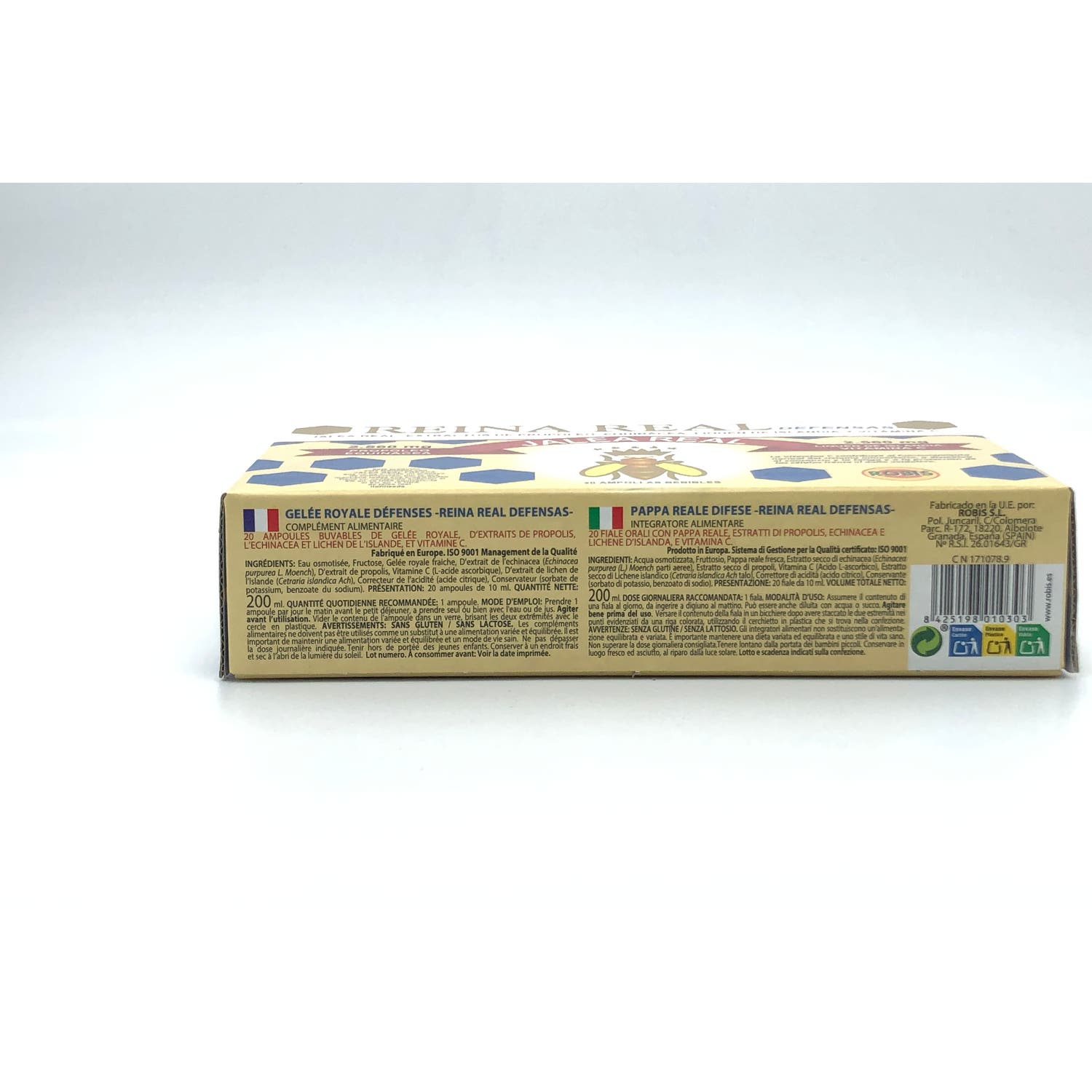 Robis Reina Real Defensas 20 Viales es un complemento alimentico en formato viales individuales formulado a base de jalea real.