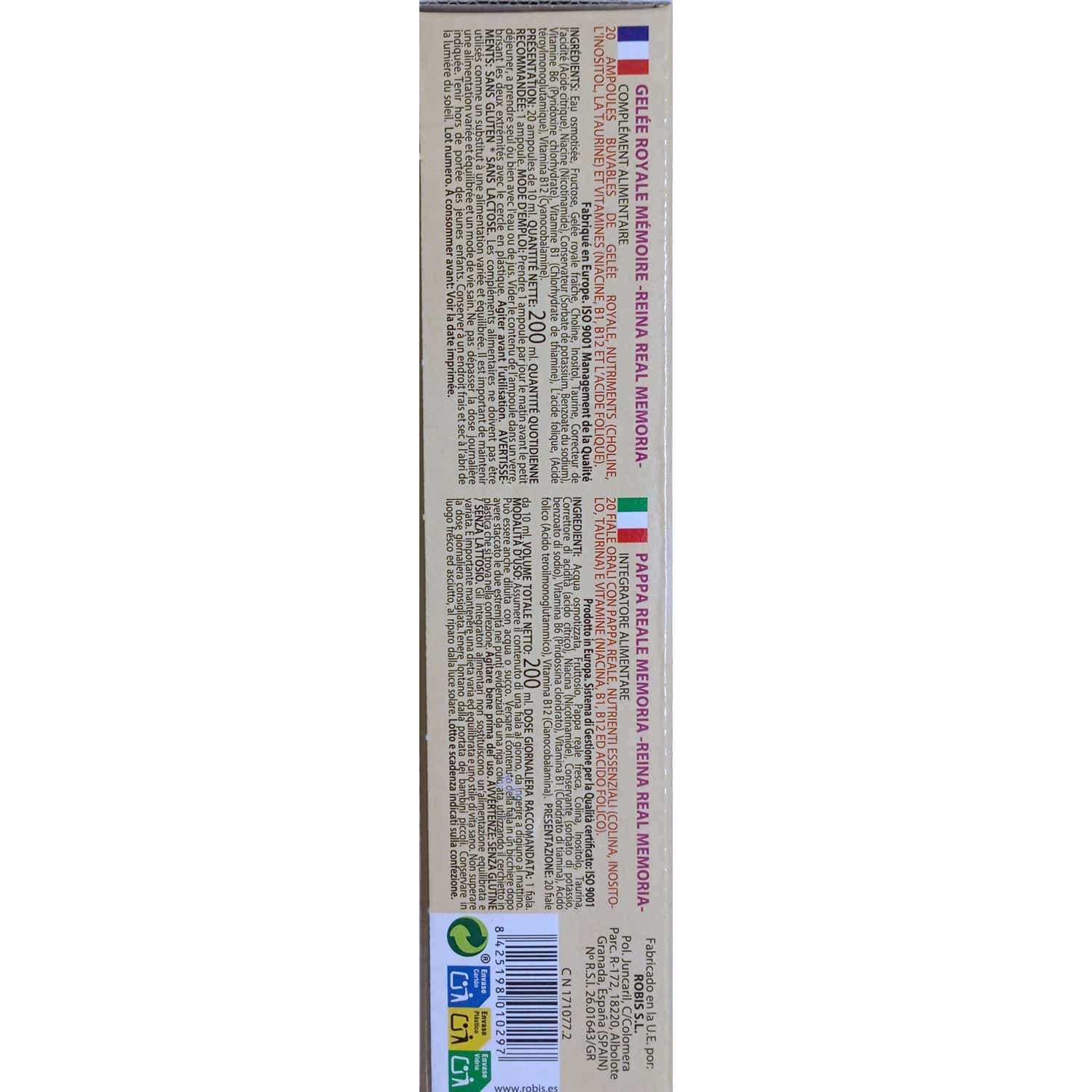 Producto natural a base de miel que favorece la estimulación de la memoria, ayudando a ejercitar la actividad mental. No debenconsumirse como sustitutos de una dieta variada y equilibrada.