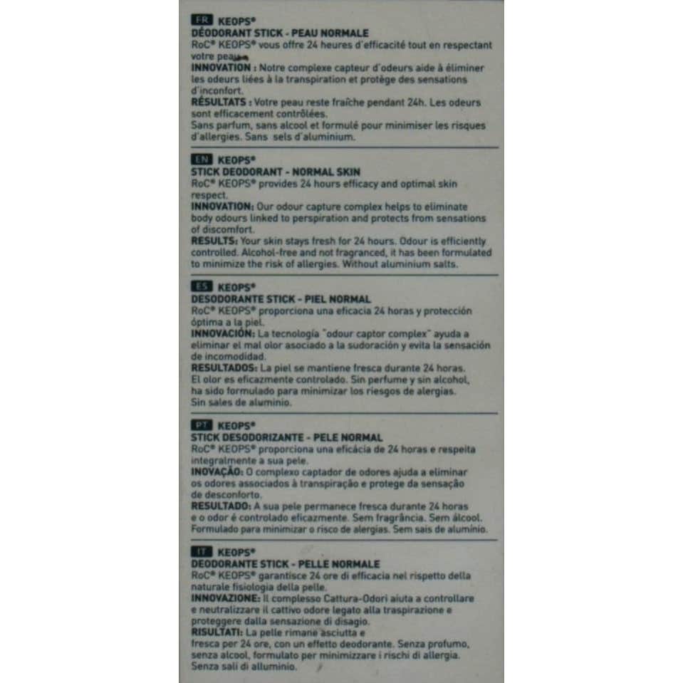 ROC Keops Desodorante Sin Alcohol Stick 40ml es un desodorante diseñado para prevenir los malos olores causados por una sudoración normal a moderada.