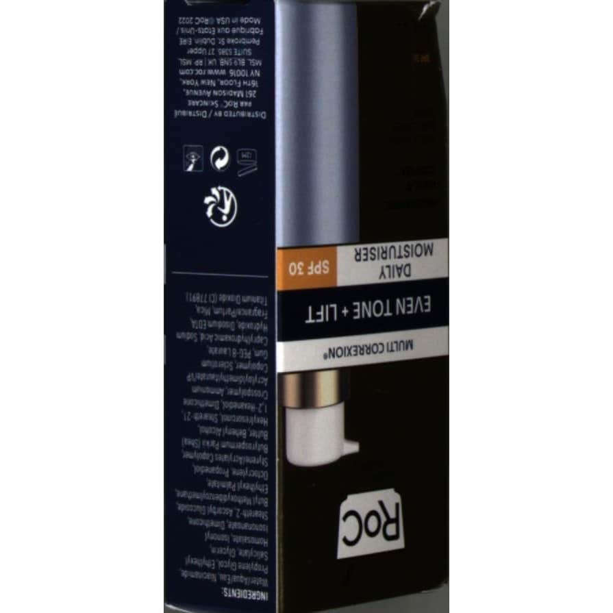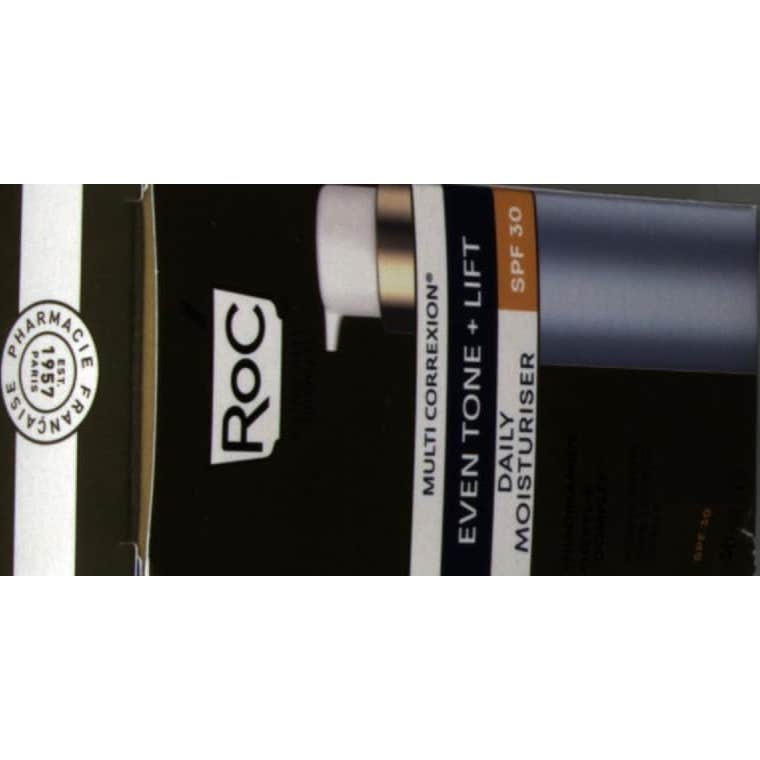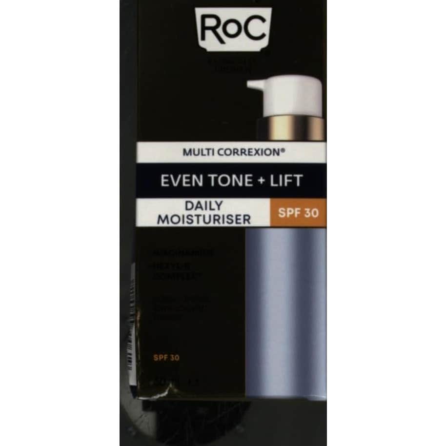 RoC Multi Correxion Even Tone + Lift Moisturiser SPF30 50ml es una crema facial diaria ideal para quienes buscan un cuidado avanzado que unifique el tono y reafirme la piel. Su fórmula ligera, enriquecida con niacinamida y el exclusivo complejo Hexyl-Resorcinol, ofrece una hidratación profunda y protección solar de amplio espectro, especialmente adecuada para pieles con signos de envejecimiento y manchas.