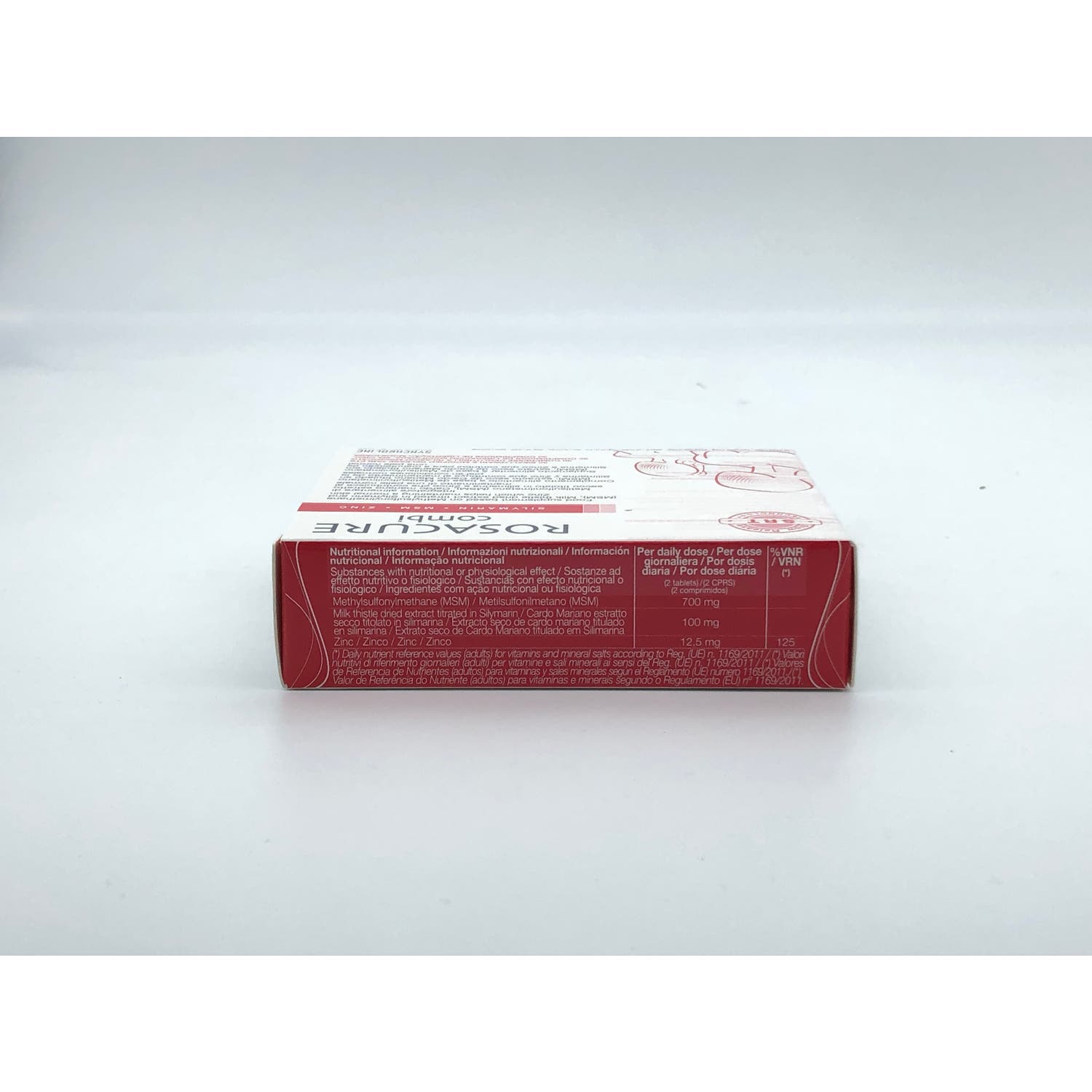 Rosacure Combi 30caps es un complemento alimenticio elaborado a base de metilsulfonilmetano, extracto seco de cardo mariano y zinc, que contribuye al mantenimiento de la piel en condiciones normales.