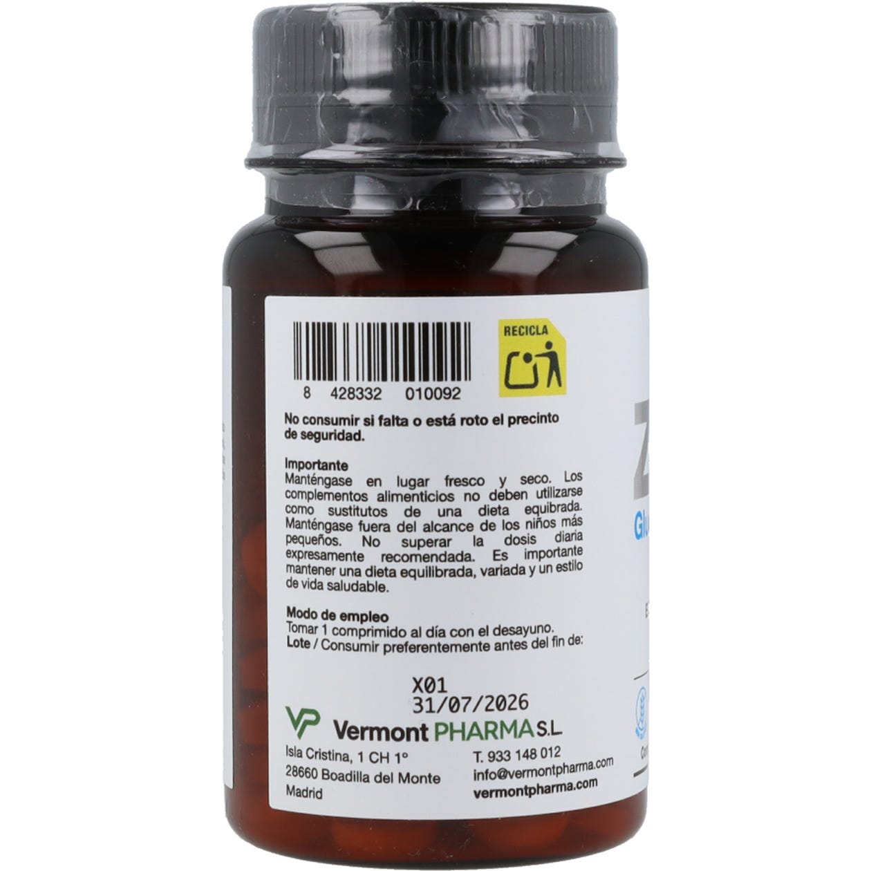 Complemento alimenticio formulado a base de zinc. Presentación de 60 comprimidos.