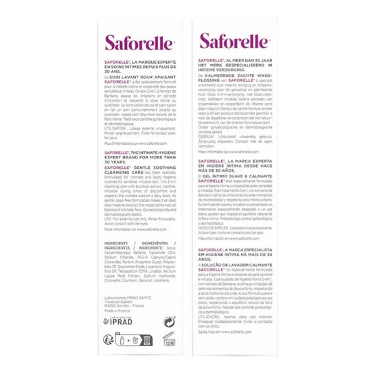 Saforelle Cuidado Limpiador Suave 500ml es un gel de uso externo para limpiar y prevenir picor o rojeces en la zona íntima.