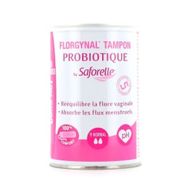 Saforelle Florgynal Tampon Probiotique Compact Normal 9 Tampones es un producto de protección sanitaria a base de probióticos con una acción local que reequilibra la flora vaginal y absorbe el flujo menstrual.Florgynal Tampon Probiotique Compact Normal de los laboratorios Saforelle te protegen a la vez que liberan probióticos para restablecer tu flora vaginal. El probiótico patentado LN (Lacto Natural) que contiene el tampón Florgynal está compuesto por 3 cepas diferentes de lactobacilos presentes de forma natural en la flora vaginal sana y cuya función es ayudar a mantener el equilibrio bacteriano.Recomendado para todas las mujeres reguladas con un desequilibrio de la flora vaginal, manifestado por picores, irritación, sensación de quemazón, olores desagradables, etc., que pueden provocar infecciones vaginales (vaginosis, micosis recurrentes, etc.).