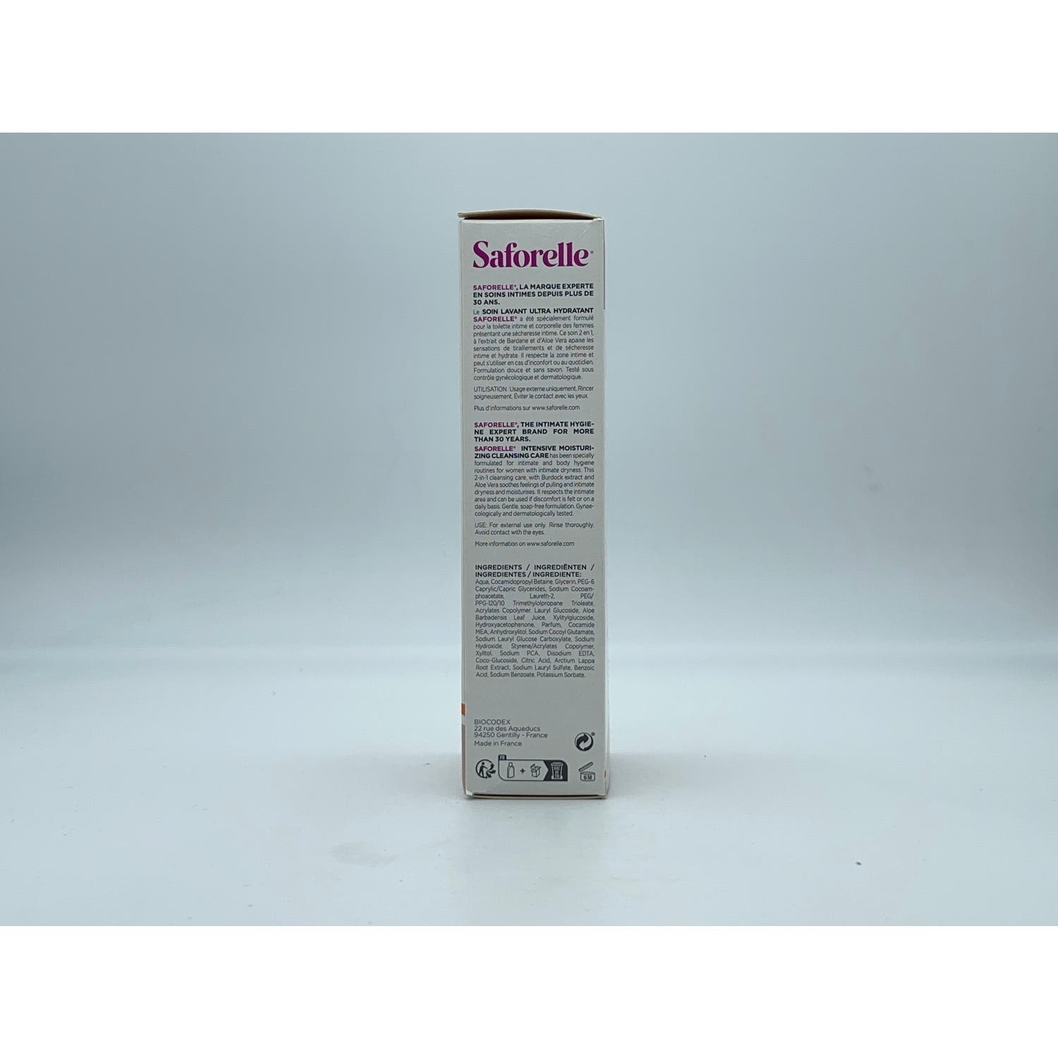 INFORMACIÓNEl cuidado Ultrahidratante de los laboratorios Saforelle ha sido especialmente formulado para las mujeres que presentan signos de sequedad íntima (toma de ciertos medicamentos, cambios hormonales como la menopausia...). Enriquecido con extractos naturales de Aloe Vera, ayuda a mejorar la hidratación, fuente de confort íntimo. Los extractos naturales de bardana tienen propiedades suavizantes, para una limpieza diaria suave.