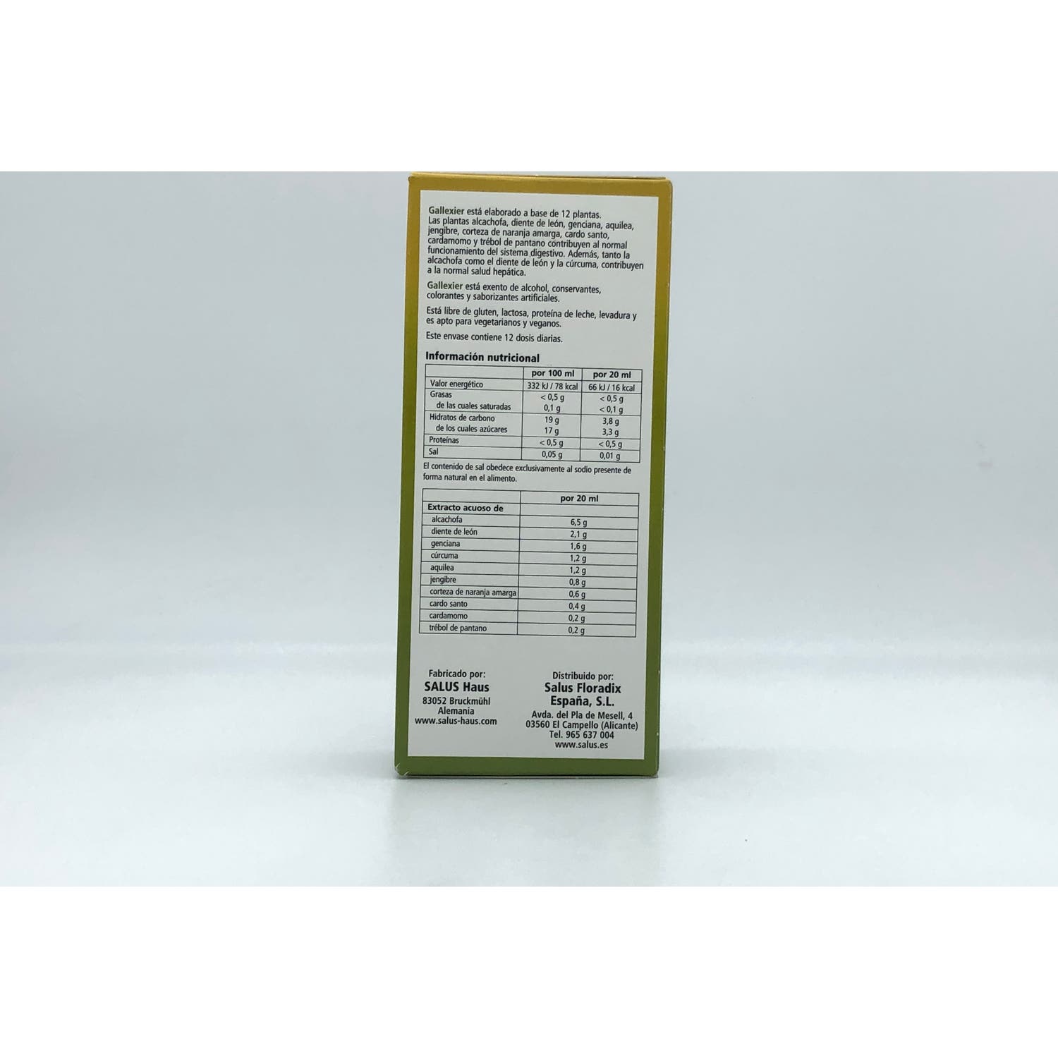 Gallexier® Salus Floradix es un jarabe que ayuda a favorecer la digestión del organismo. Elaborado a partir de extracto de alcachofa, diente de león, genciana, cúrcuma, aquilea, jengibre, hinojo, manzanilla, corteza de naranja, cardo santo, cardamomo y trébol de pantano combate las digestiones pesadas.