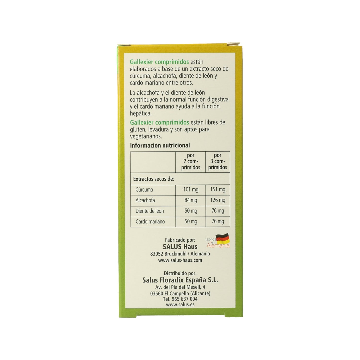Salus Floradix Gallexier® fórmula herbal es un complemento alimenticio elaborado a partir de extracto seco de cúrcuma, alcachofa, diente de león y cardo mariano entre otros, que ayuda a favorecer la digestión de las comidas copiosas.