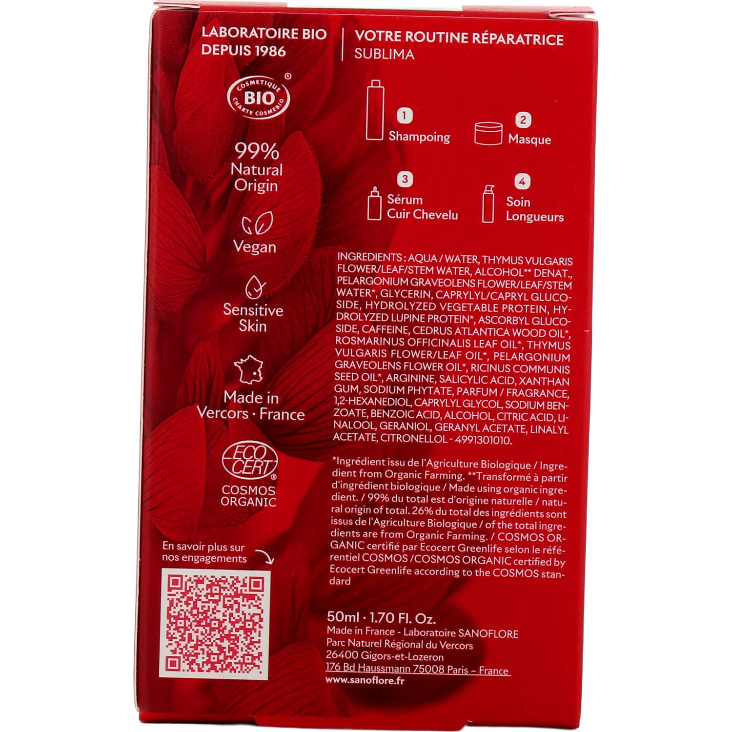 Sanoflore Sublima Sérum Cuero Cabelludo Bio es un tratamiento diseñado para fortalecer el cabello desde la raíz. Su fórmula se basa en un complejo patentado que combina: