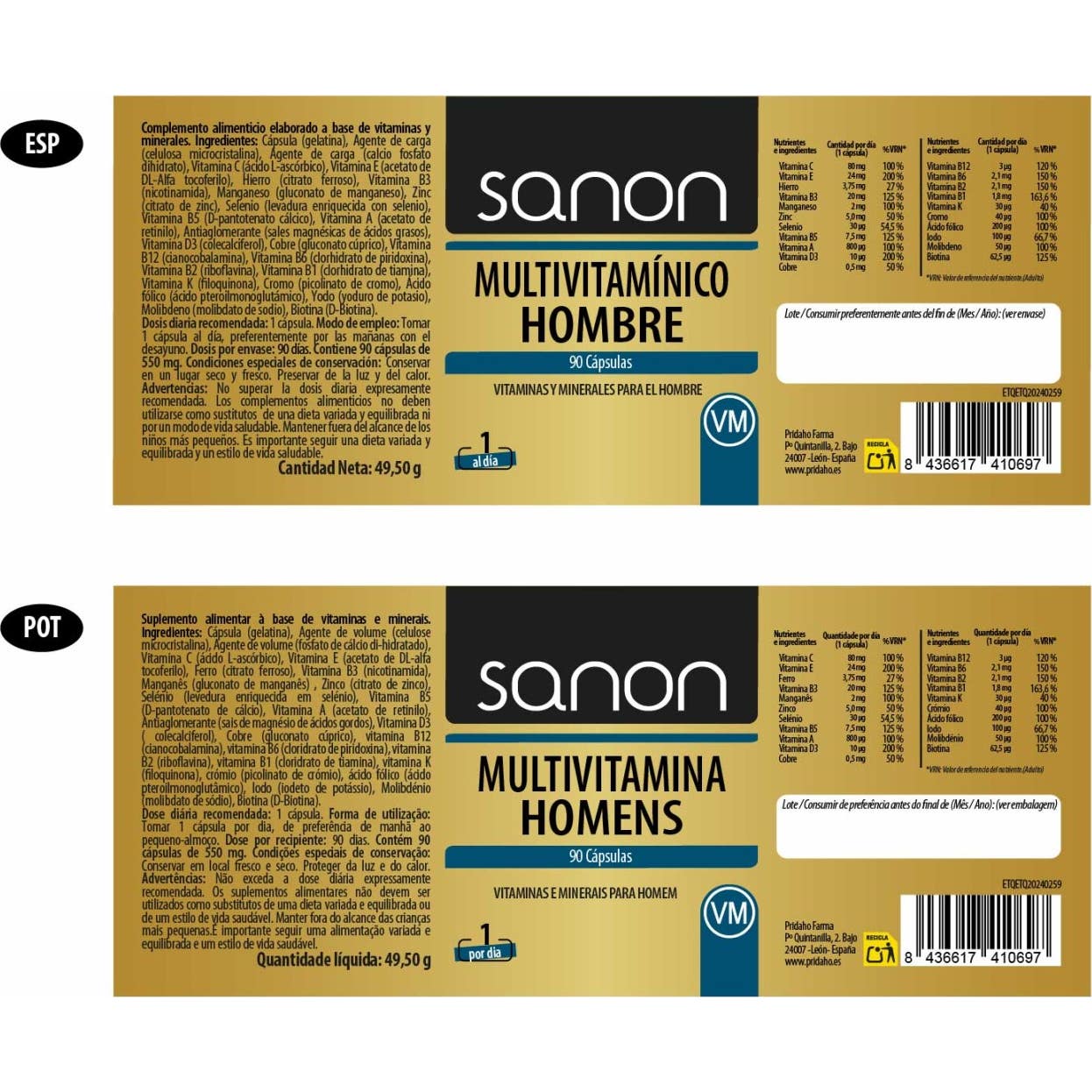 Sanon Multivitamínico Hombre 90caps es un complemento alimenticio diseñado específicamente para satisfacer las necesidades nutricionales de los hombres. Este producto combina una cuidada selección de vitaminas y minerales que contribuyen al bienestar general.