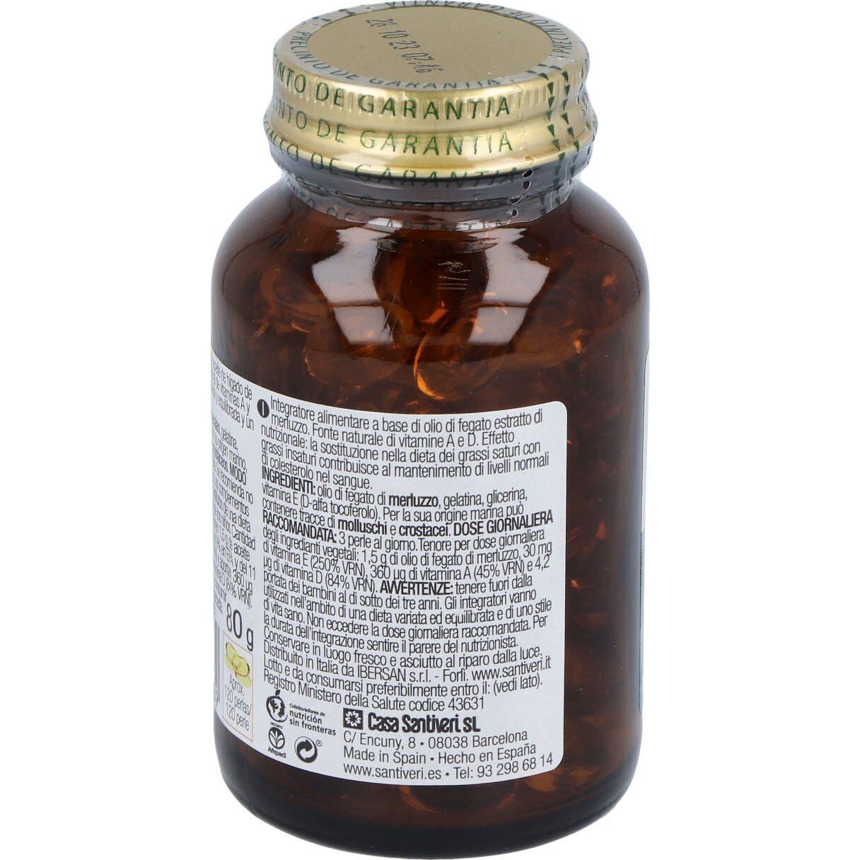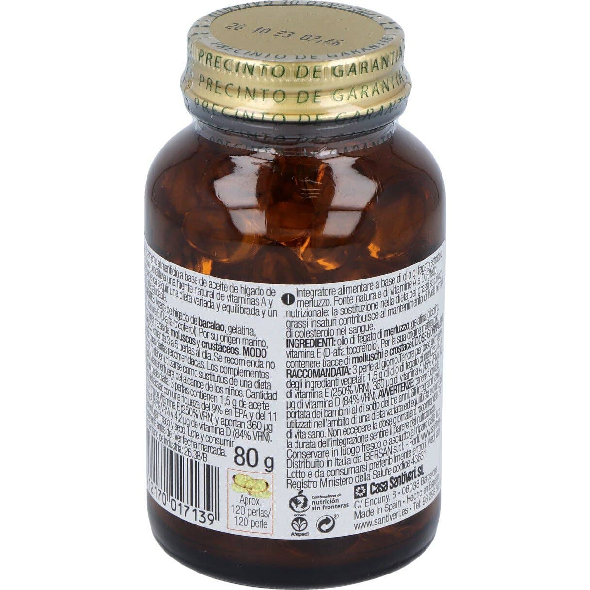 SantiveriAceite Higado Bacalao 120perl es un suplemento que ofrece una fuente natural de vitaminas A y D, así como ácidos grasos Omega-3 de manera práctica.