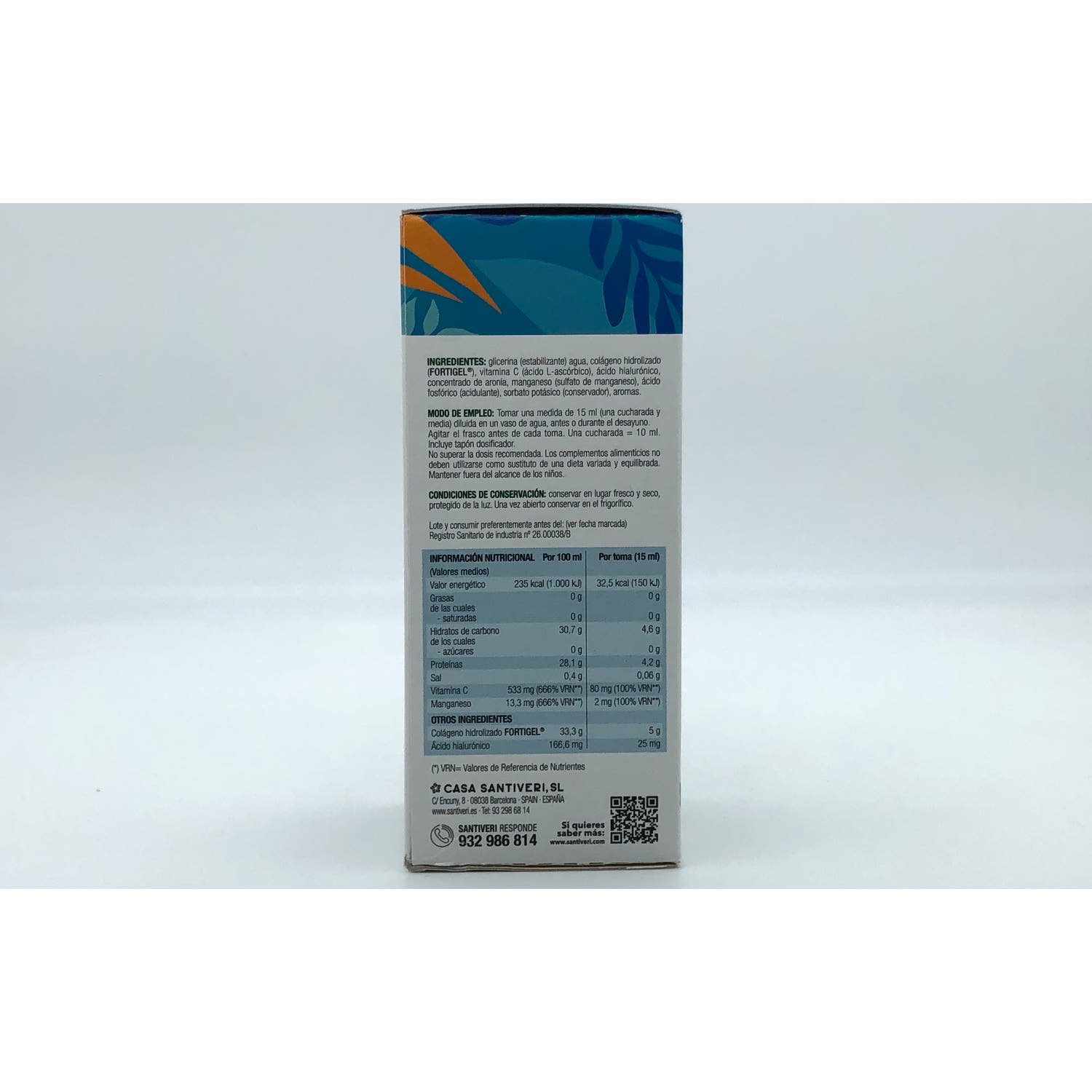 Santiveri Colágeno Líquido Articulaciones 240 Ml es un jarabe líquido con vitamina C, ácido hialurónico y magnesio. Estos componentes refuerzan y protegen los huesos y articulaciones.