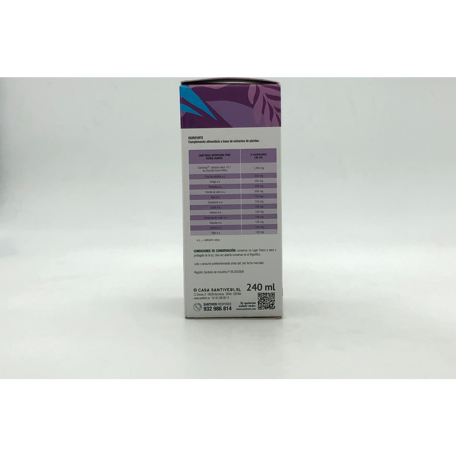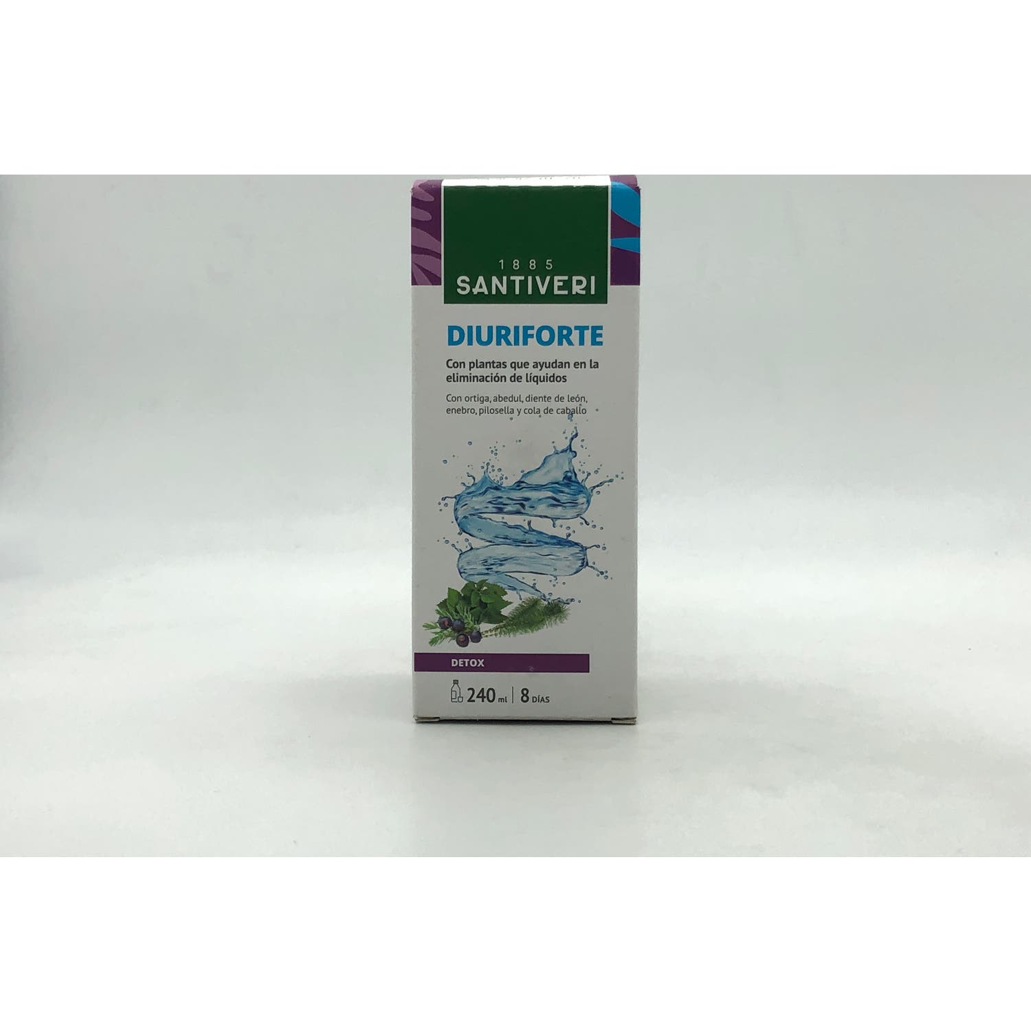 Santiveri Diuriforte 240ml es un complemento alimenticio en formato jarabe que contribuye a drenar líquidos del organismo.