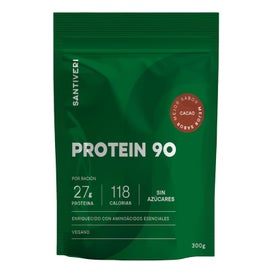 Santiveri Protein 90 Doypack Cacao 300 gr es un preparado alimenticio en polvo de alto contenido proteico, diseñado para la elaboración de bebidas. Este producto incorpora edulcorantes, lo que lo convierte en una opción agradable al paladar.