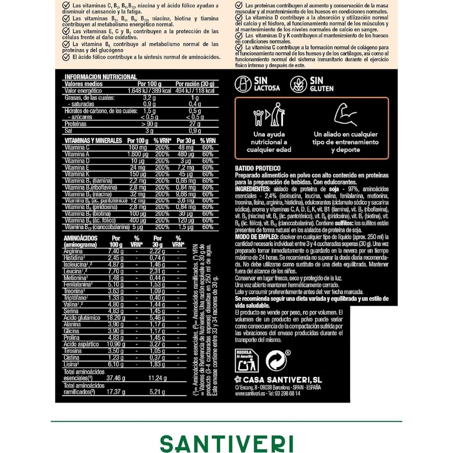 Las proteínas en este producto provienen de fuentes vegetales, específicamente del aislado de proteína de soja, lo que lo convierte en una opción apropiada para quienes siguen dietas variadas y para deportistas vegetarianos.