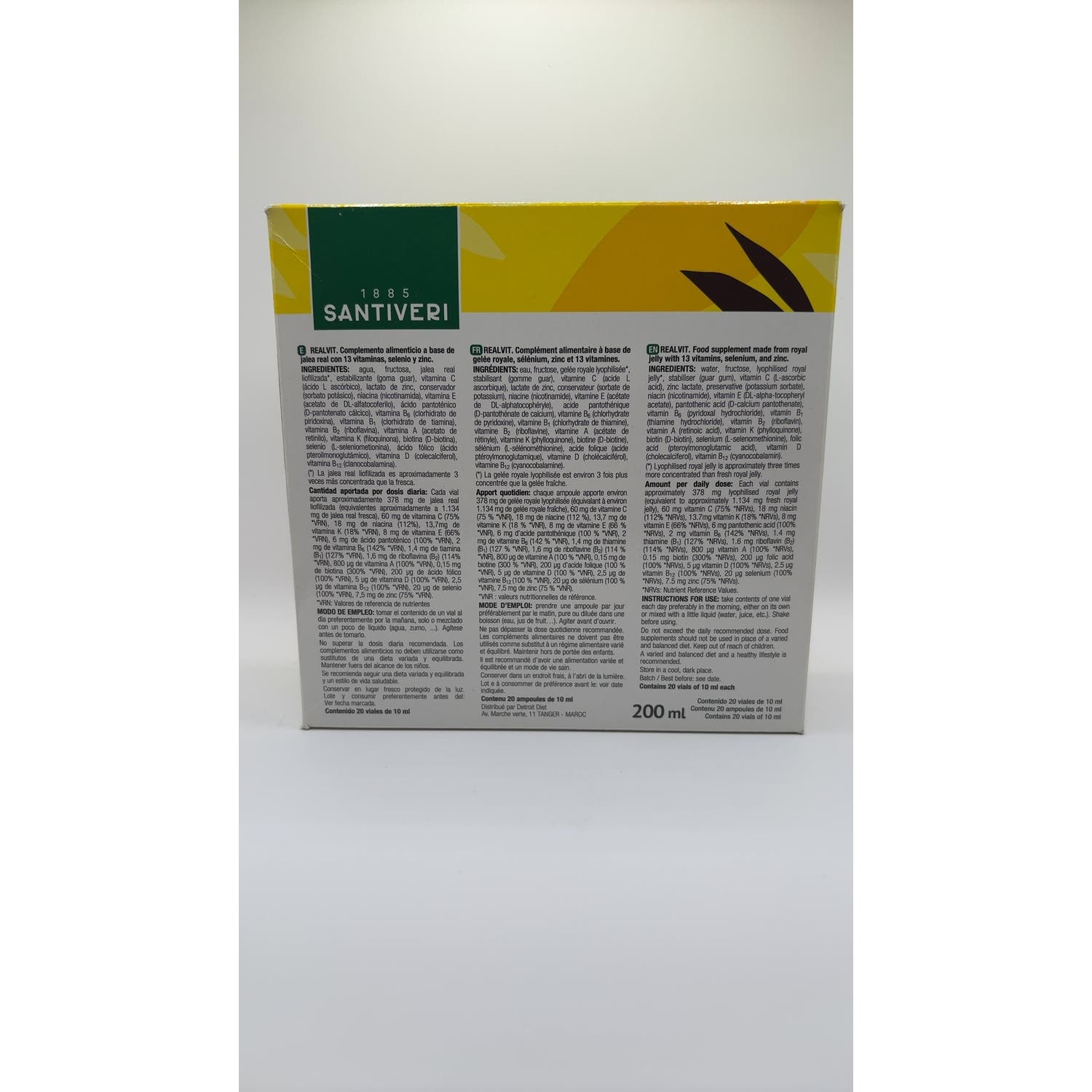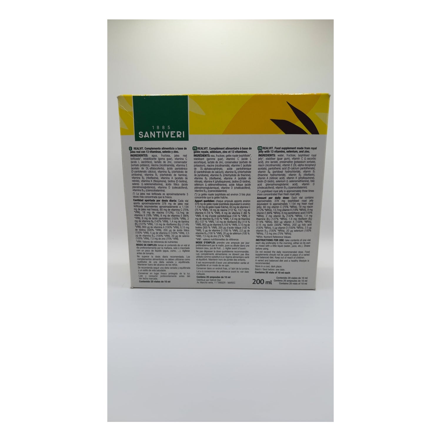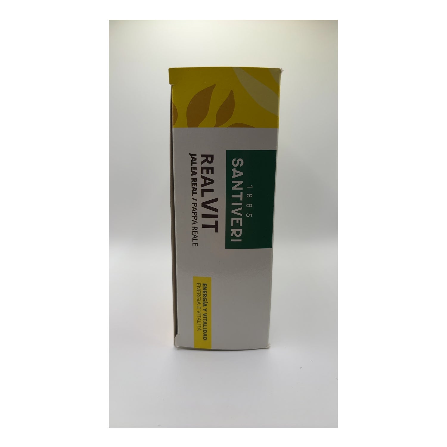 La jalea real de Santiveri Realvit es liofilizada, es decir, tres veces más concentrada que la jalea fresca. Cada cápsula aporta: