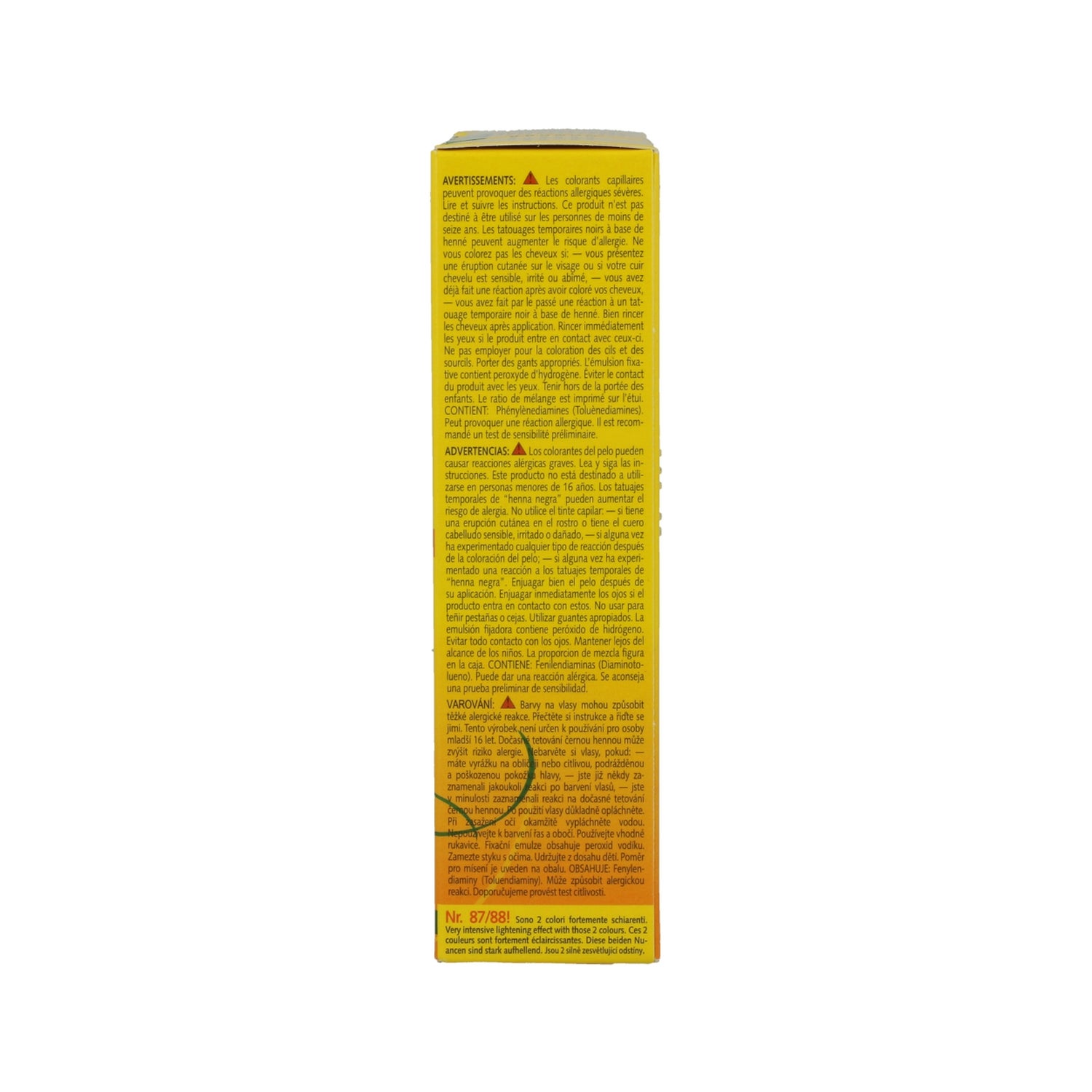 El pack contiene un tubo de 55ml de tinte, una botella de 55ml de emulsión fijadora, un botellín de 15ml de bálsamo revitalizante y un par de guantes desechables.