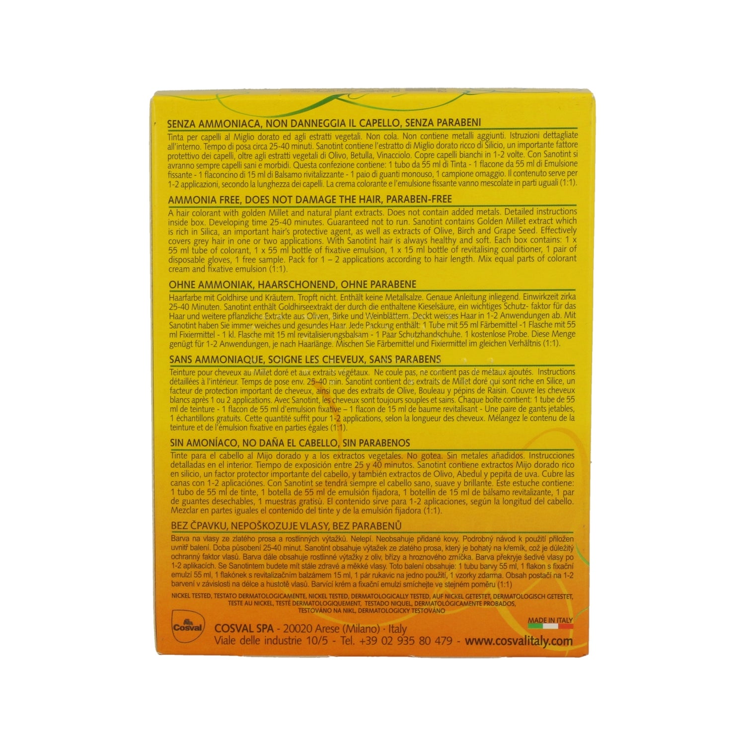 Los tintes Sanotint están formulados con extractos vegetales y mijo dorado, que es rico en silicio y protege el cabello. Además, incluye extractos de olivo, abedul y pepita de uva.