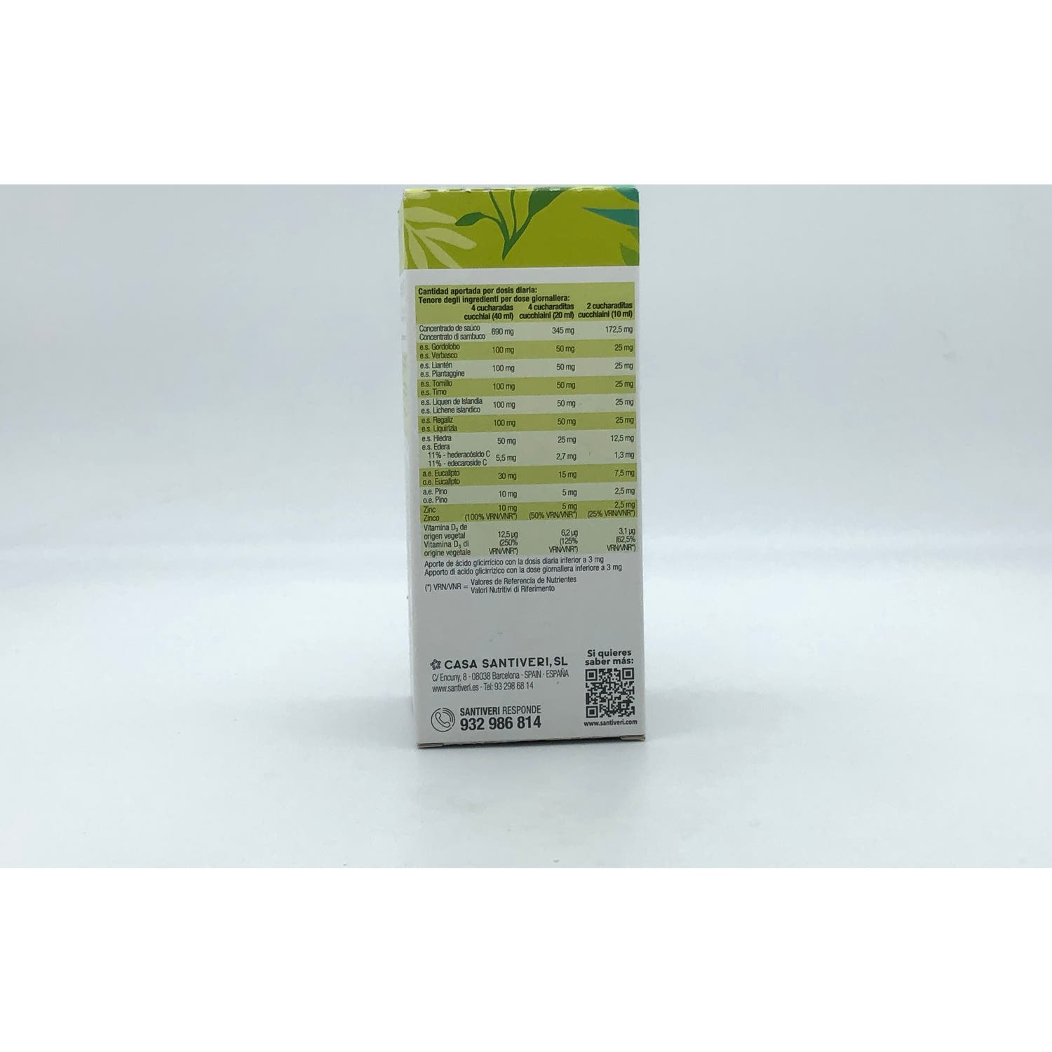 Este jarabe combina la acción de distintas plantas medicinales como el gordolobo, llantén, tomillo, liquen de Islandia, hiedra y aceites esenciales de pino y eucalipto. Todas estas plantas son conocidas por sus propiedades expectorantes y descongestivas.