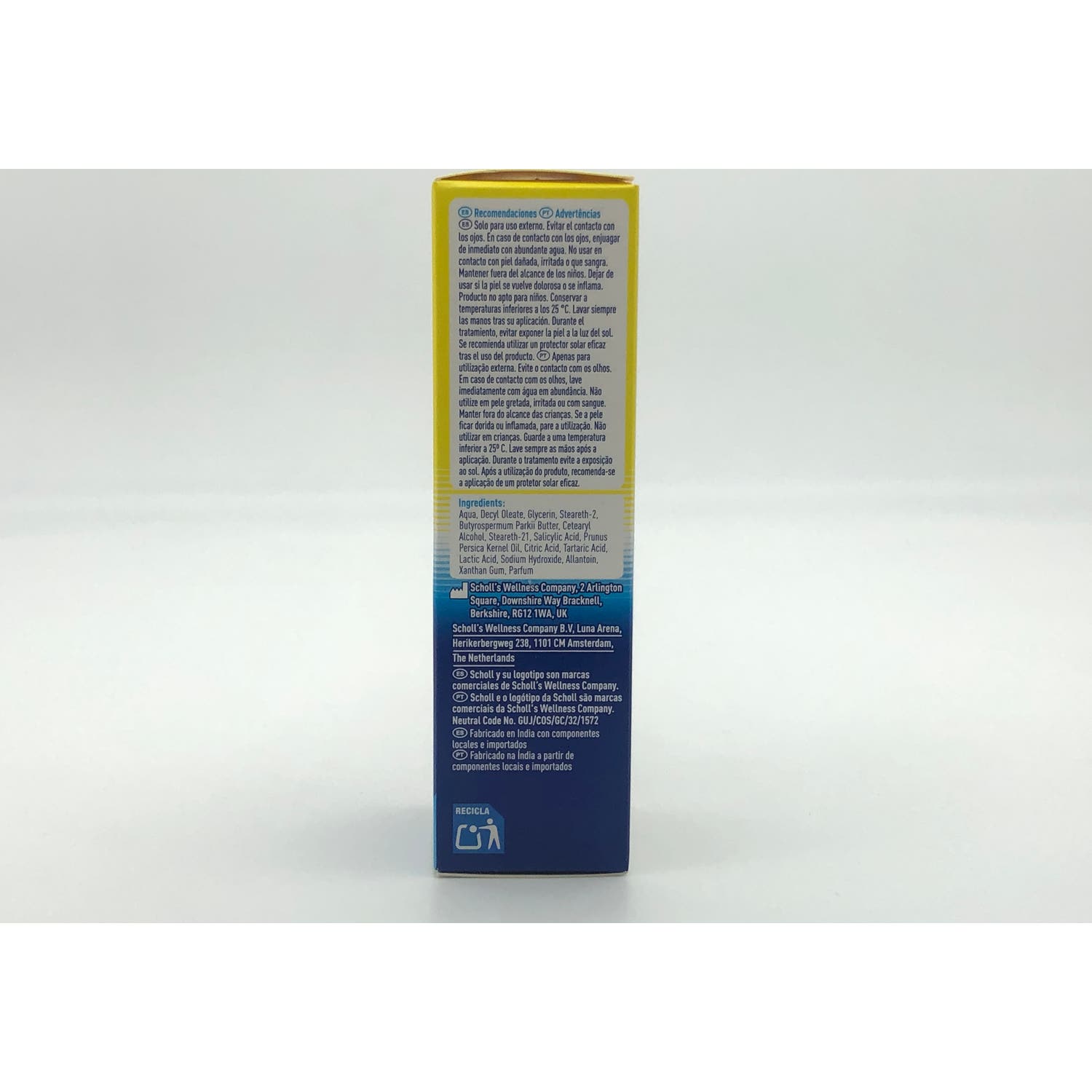 Scholl Crema Durezas Pies 60ml actúa frente los callos, callosidades y durezas en máximo una semana. Por su composición, consigue eliminar las células muertas y regenerar la piel de los pies.