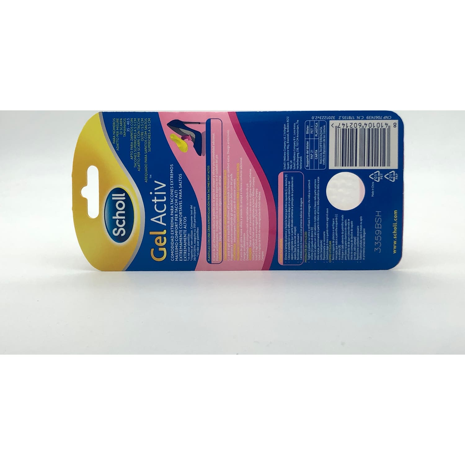 Scholl Gel Activ Tacones Muy Altos 1par son plantillas ergonómicas que ayudan a prevenir el dolor en los pies al caminar con tacones altos o muy altos.