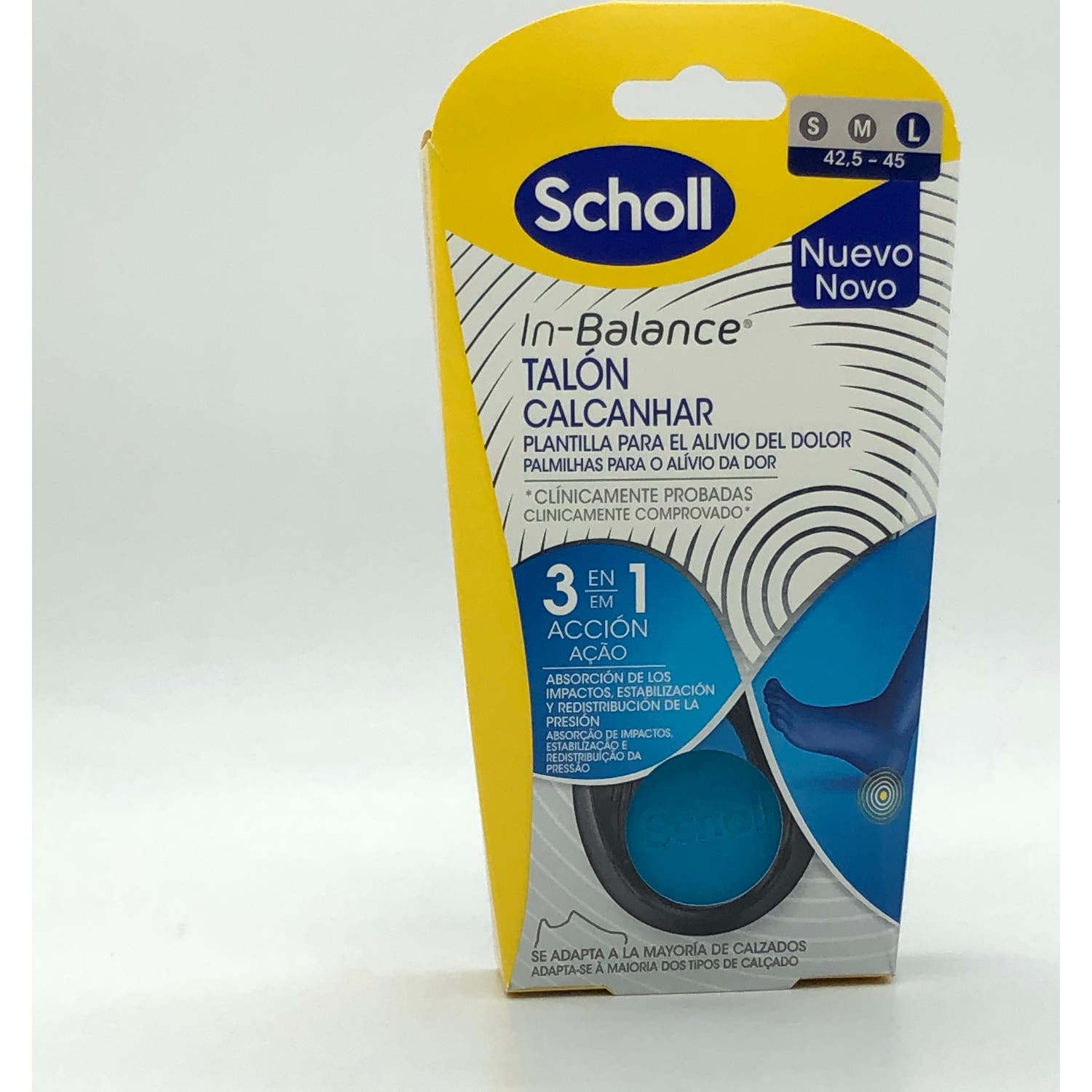 Scholl In-Balance Talón Talla L 1par es una plantilla indicada para aliviar el dolor en el talón.