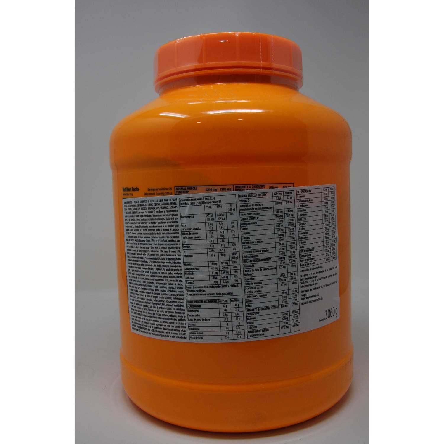 Concentrado de Proteína de Suero , Maltodextrina , Harina de Avena , Aromas: Plátano, Yogur, Vainilla Cremosa , Crocante en Polvo , Azúcar , Jarabe de Glucosa , Aceite Vegetal , Aceite de Palma , Leche en Polvo , Aroma , Emulgente: Lecitina de Soja , Chocolate Blanco en Polvo ( Azúcar , Manteca de Cacao 33,4% , Leche en Polvo ) , Dextrosa , Proteína de Ternera Hidrolizada , Creatina Anhidra , Creatina Monohidrato MicronTec , Proteína de Arroz , Palatinose™ ( Isomaltulosa ) , Taurina , Almidón de Maíz Ceroso , L-Glutamina , Dextrina Cíclica , L-Arginina Micronizada , L-Leucina Micronizada , Caseína Micelar , ModCarb™ ( Avena , Amaranto , Trigo Sarraceno , Mijo , Quinoa ) , Aislado de Proteína de Suero ( Emulgente: Lecitina de Soja ) , L-Isoleucina Micronizada , L-Valina Micronizada , Espesante: Goma Xantana , Beta Alanina , Ácido L-Ascórbico ( Vitamina C ) , Edulcorantes ( Sucralosa , Acesulfamo K ) , Clorhidrato de Betaína , CreaPep ( Aislado de Proteína de Suero Hidrolizada , Caseína Micelar ( Emulgente: Lecitina de Soja ) ) , Creatina Monohidrato , Glicina , L-Alanina , L-Arginina Alfa Cetoglutarato 2:1 , L-Lisina Hidrocloruro , L-Fenilalanina , NOP-47 Proteína de Leche Hidrolizada , Citrato de Creatina , Piruvato de Creatina , Kre-Alkalyn® ( Creatina Monohidrato ) , L-Carnitina L-Tartrato , L-Ornitina HCL , Calcio Alfa Cetoglutarato , Ácido Alfa Lipoico , Extracto de Garcinia Mangostana 10:1 (Corteza de la Fruta) , Extracto de Trifolium Pratense 30:1 (Hoja y Flor) , BioPerina® (Extracto de Fruto de Piper 50:1) , Colecalciferol ( Vitamina D ).