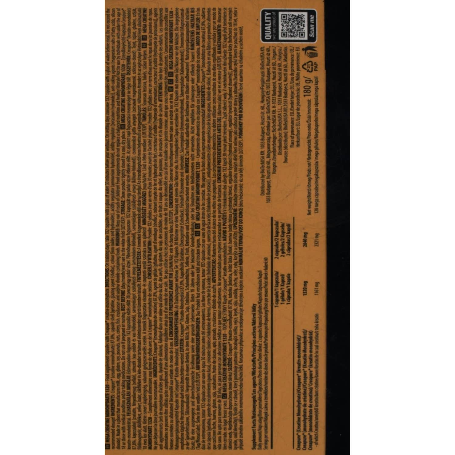 Scitec Nutrition Mega Creatina Monohidrato 1320 120caps es un suplemento diseñado para mejorar el rendimiento deportivo y favorecer el desarrollo muscular. Contiene creatina monohidrato Creapure® de alta pureza, ideal para maximizar la fuerza y energía durante entrenamientos intensos.