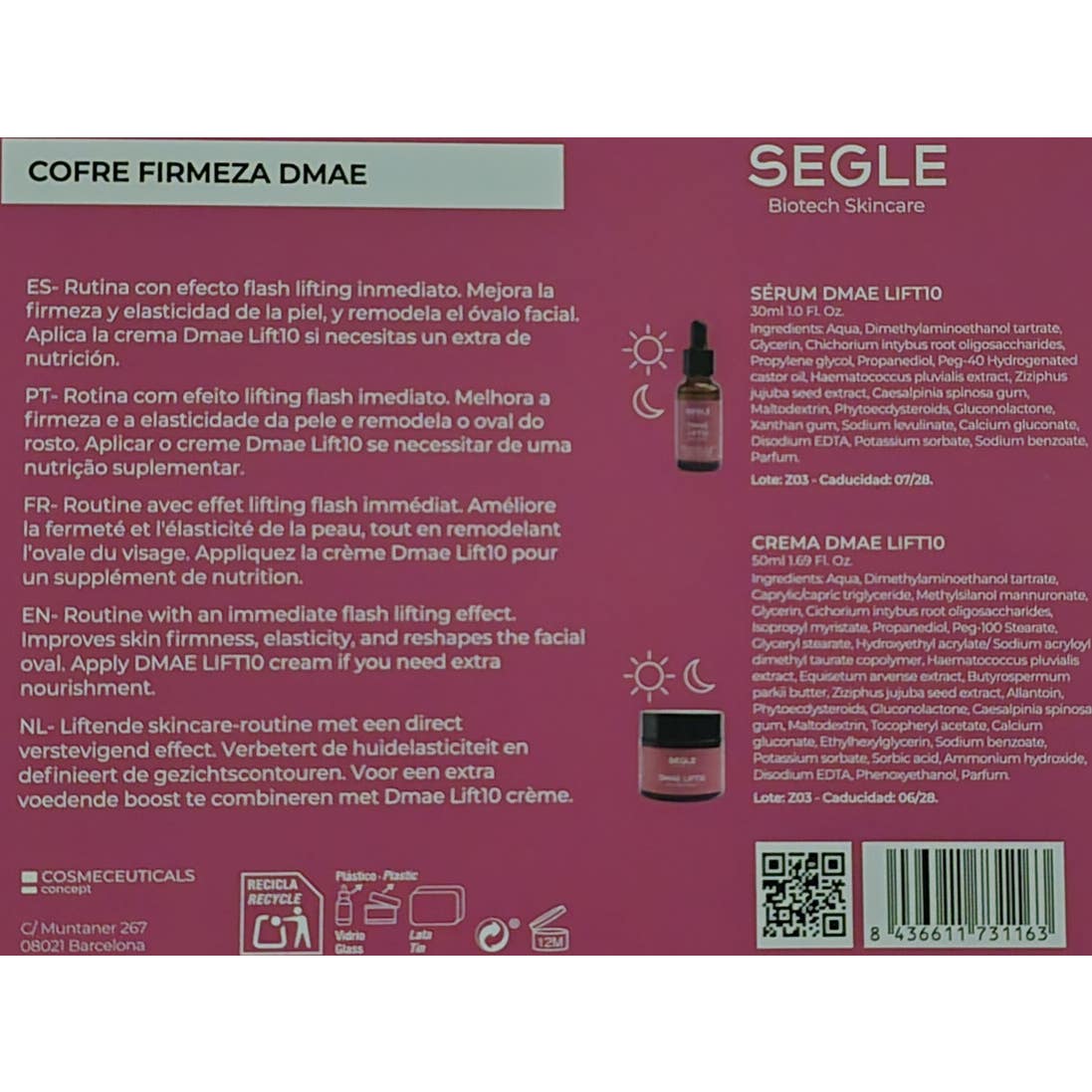 Segle Clinical Dmae Lift 10 Pack es un conjunto diseñado para proporcionar un efecto reafirmante y lifting, ideal para remodelar el óvalo facial. Este pack incluye un serum de 30 ml y una crema de 50 ml, ambos formulados con DMAE, una sustancia natural que presenta propiedades antioxidantes y antiinflamatorias.