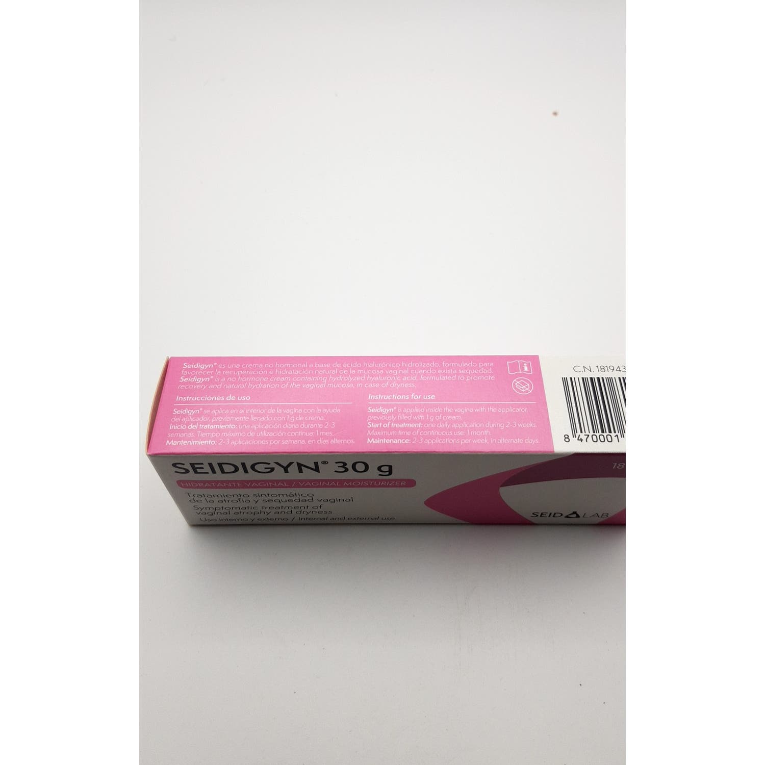 Seidigyn Hidratante Vaginal 30 G es un tratamiento en forma de crema para aliviar la atrofia y la sequedad vaginal. La crema está formulada con ácido hialurónico hidrolizado que ayuda a recuperar la hidratación de la mucosa vaginal.