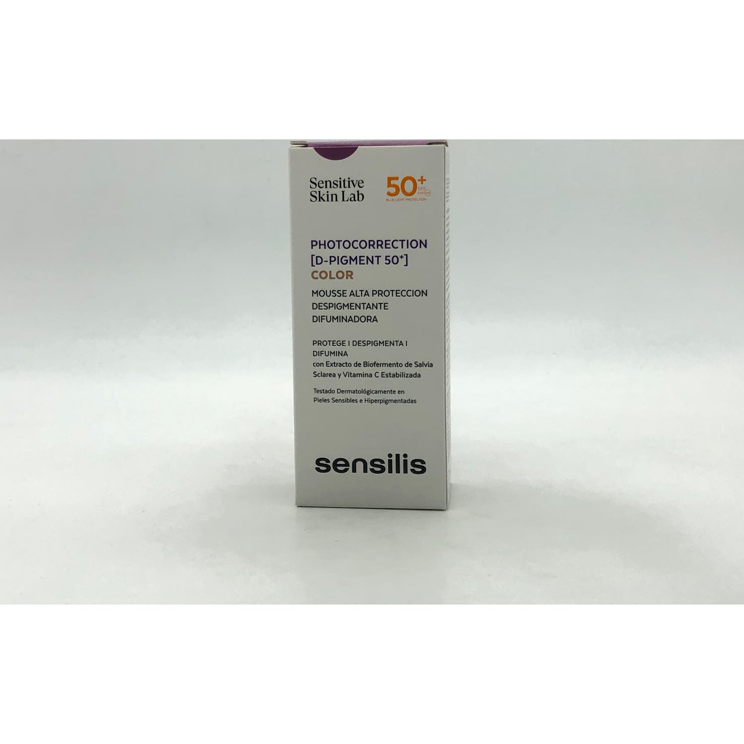 Sensilis Photocorrection [D-Pigment 50+] Mousse Despigmentante Color SPF50+ 40ml es un fotoprotector en mousse que protege la piel con filtros SPF50+ frente a la radiación UVA, UVB y la luz azul.