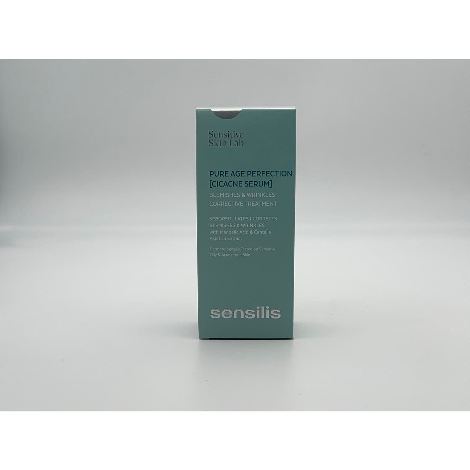 Sensilis Pure Age Perfection [Cicacne Serum] Tratamiento Corrector Arrugas y Imperfecciones 30ml es un sérum oil-free de textura fluida y doble corrección que ayuda a corregir imperfecciones y arrugas. Está indicado para pieles sensibles y grasas con tendencia acneica.