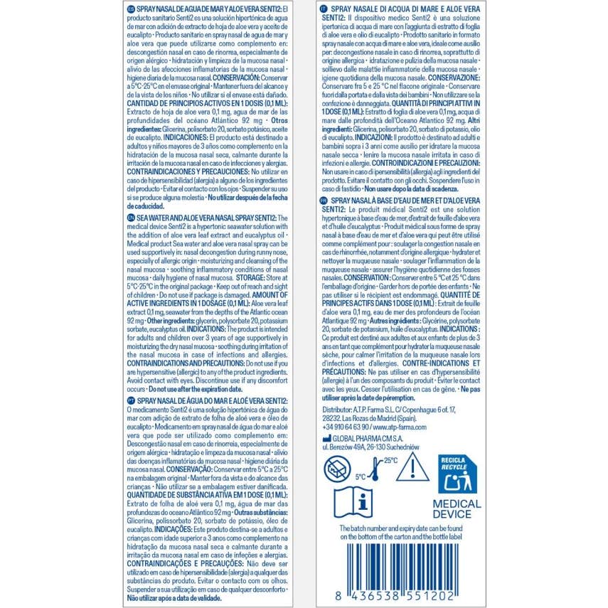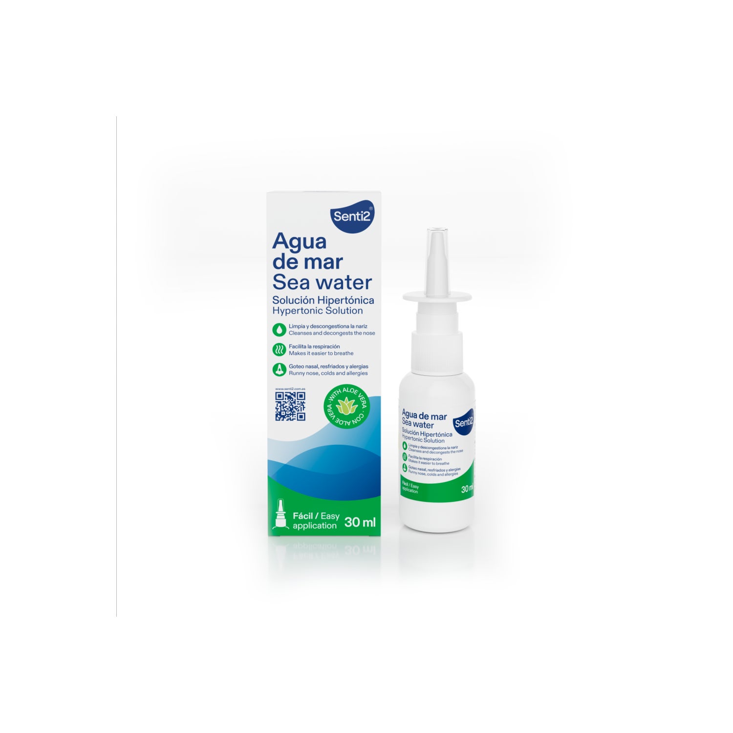 Senti2 Agua de Mar Spray Nasal Descongestivo Solución Hipertónica 20ml es un spray salino ideal para descongestionar la zona nasal en caso de resfriado.