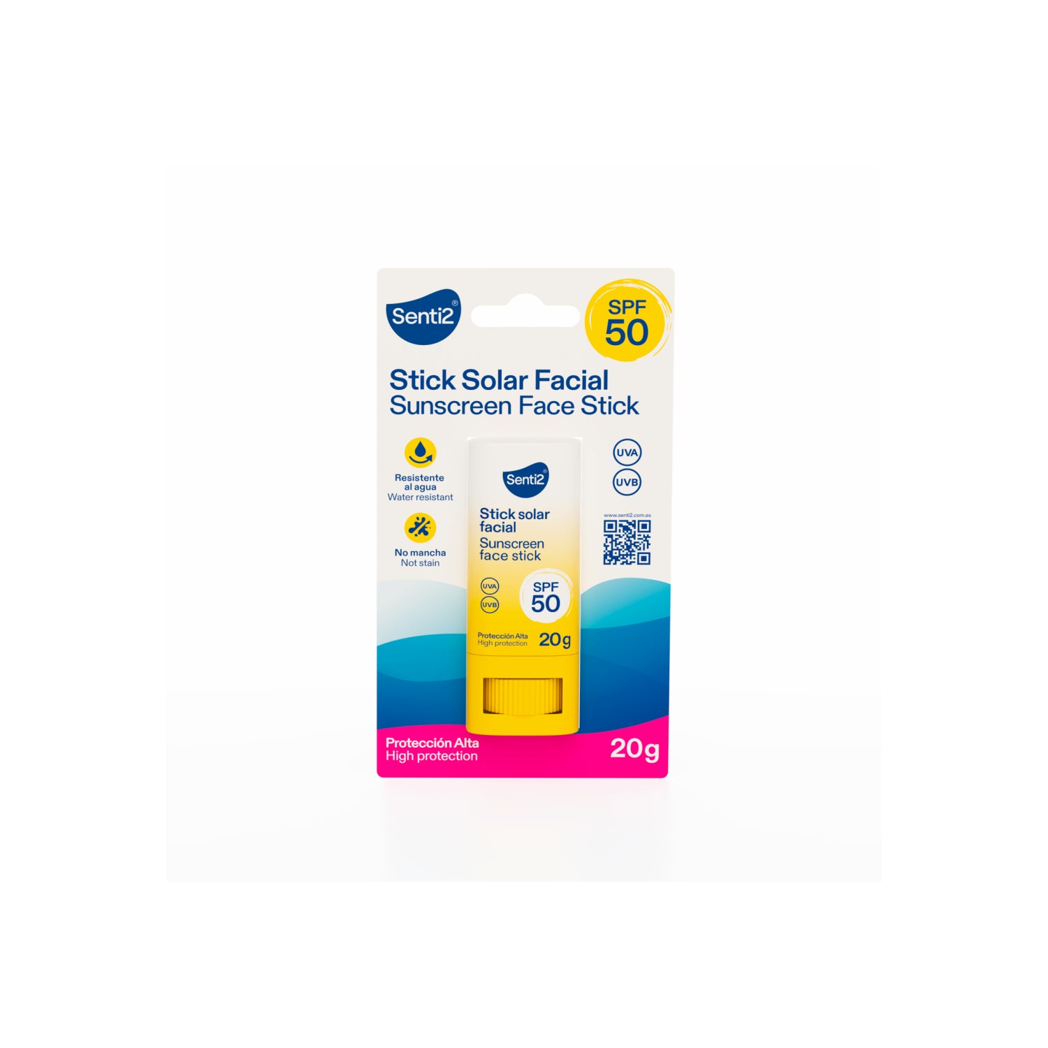 Senti2 Stick Solar Facial SPF 50 20g es un producto diseñado para ofrecer una protección solar eficaz. Con un índice de protección SPF 50, este stick se destaca por su resistencia al agua, lo que garantiza su eficacia incluso durante actividades acuáticas. Su fórmula hidratante contribuye a mantener la piel suave, evitando la formación de manchas.