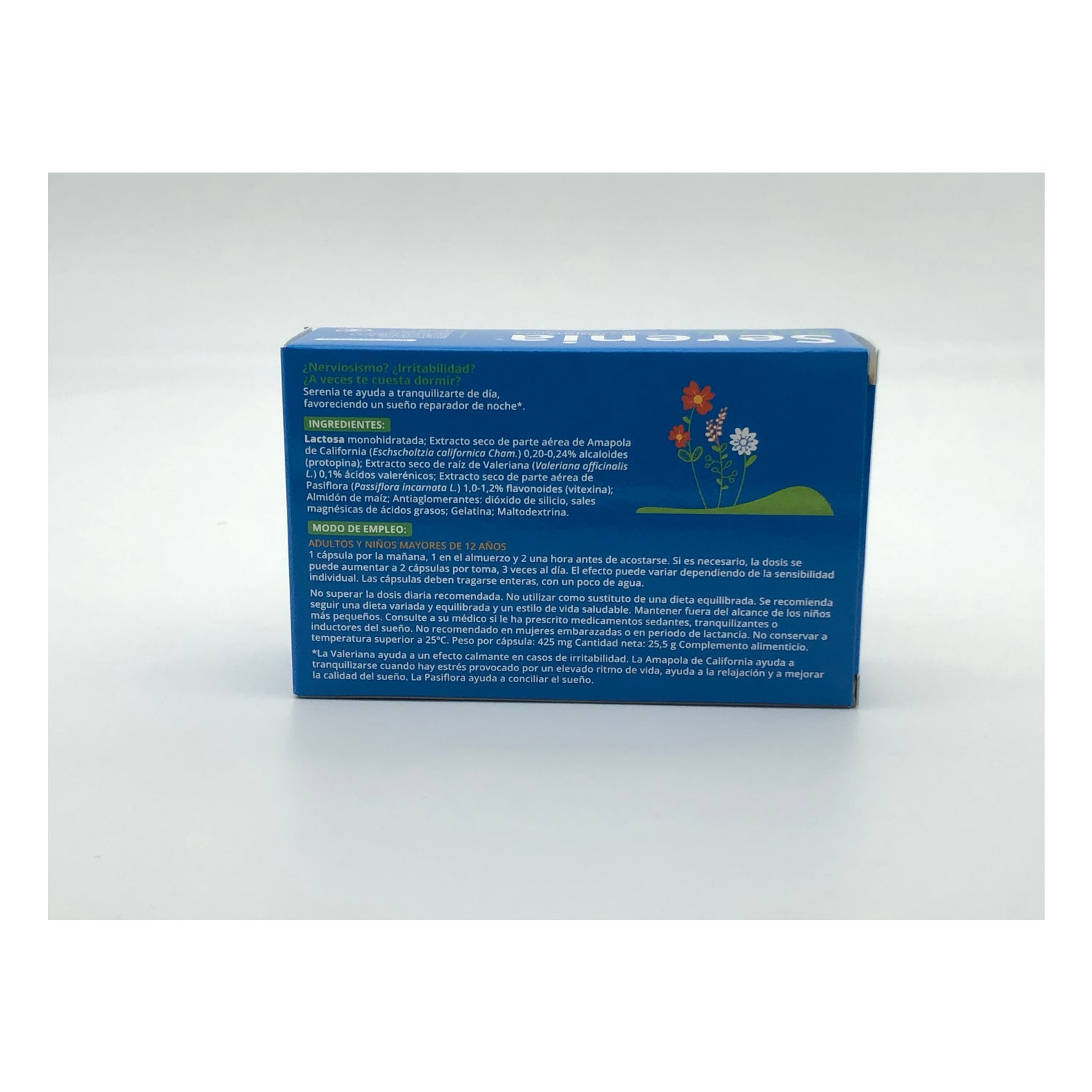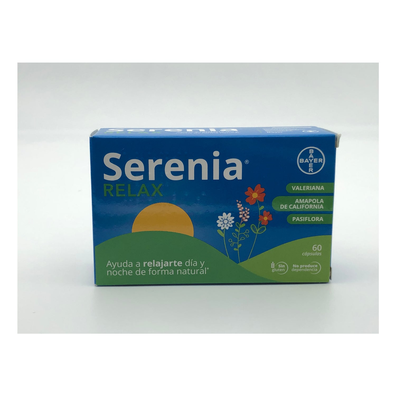 Bayer Serenia® 60cáps es un complemento alimenticio hecho a partir de tres extractos de plantas que favorecen el sueño y ayudan a la relajación en situaciones de nerviosismo o estrés. Su fórmula contiene amapola de California, útil en casos de trastornos de sueño ligados a despertares precoces; valeriana, indicada en situaciones y estados de estrés; y pasiflora, que prolonga las fases del sueño profundo, mejorando su calidad y duración.