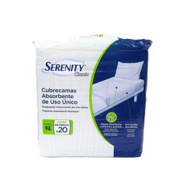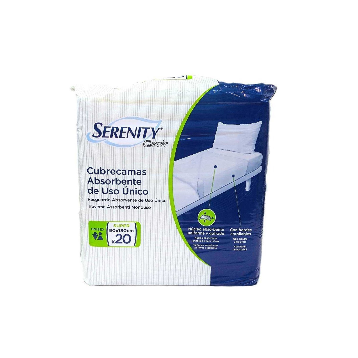 Serenity Classic Cubrecamas Absorbente de Uso Único 90x180 Super 20uds son salvacamas con un alto nivel de protección que ayudan a que las pérdidas de orina no se filtren, mojando la cama o sillas.